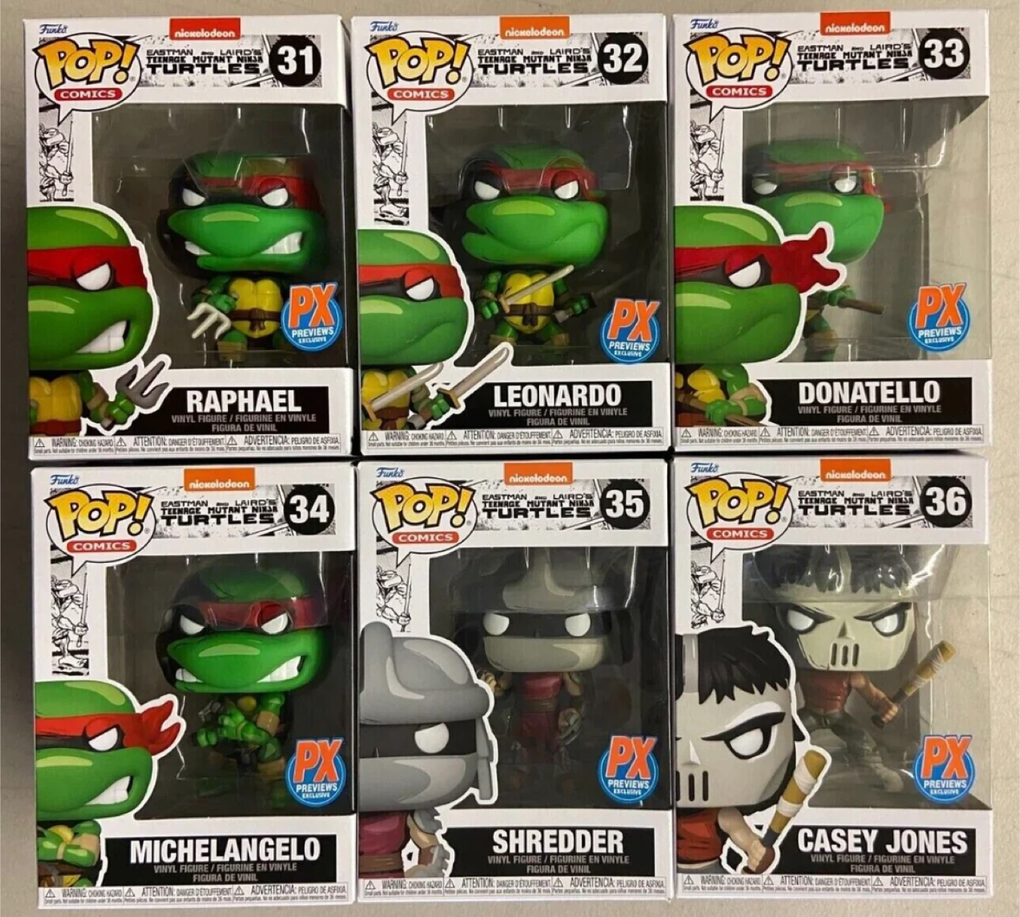 Funko PX exclusive Teenage Mutant Ninja Turtles. Including Raph, Leo, Donny, Mikey, Shredder, and Casey.