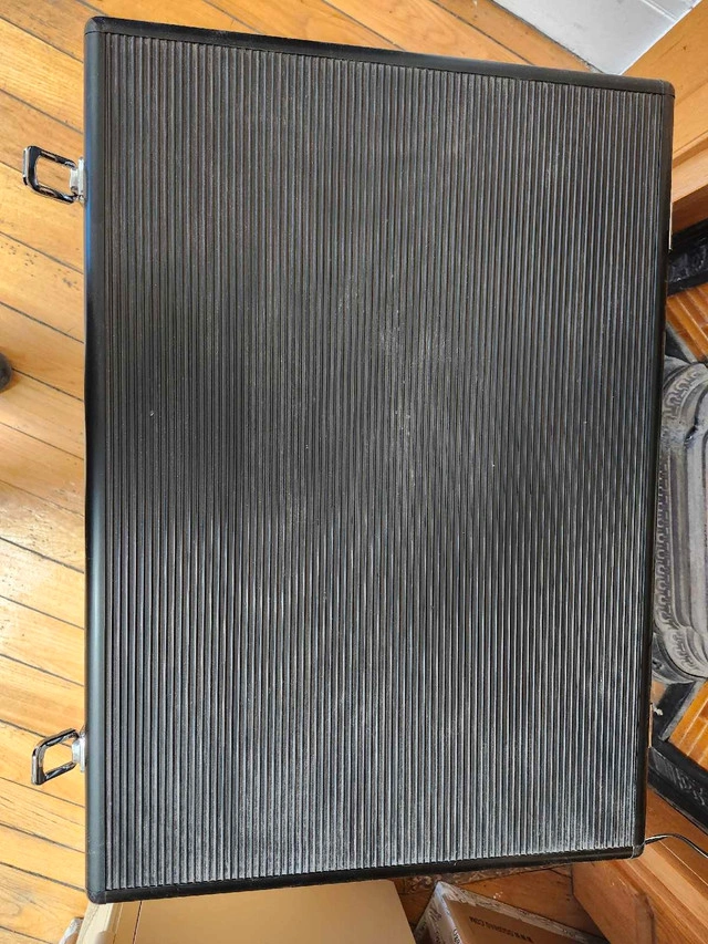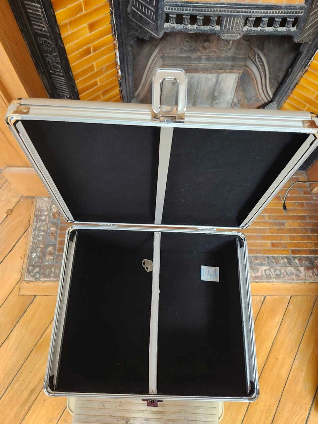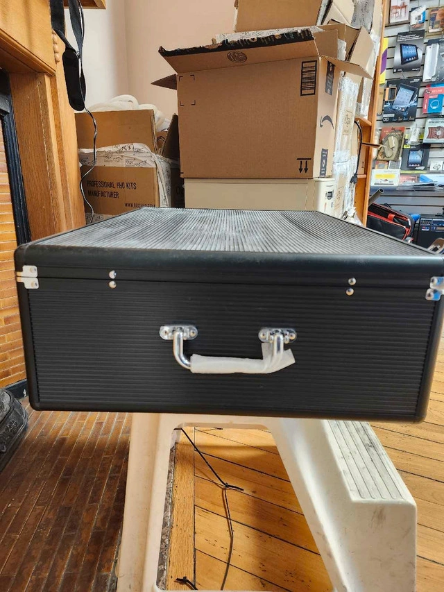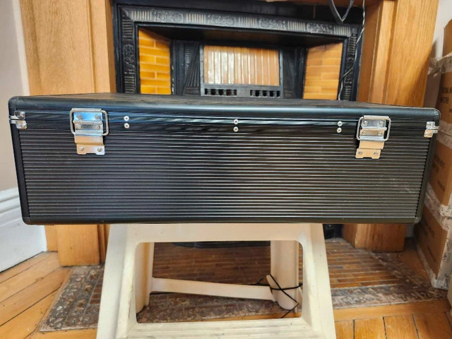 I'm selling a new, black DVD disc storage case. It's in good condition and perfect for transporting your stuff safely and securely. Durable construction and secure latches. It comes with 2 keys to lock for extra peace of mind. If the ad's up, it's still available! We have many of these in varying sizes available, ranging between $25 and $70.