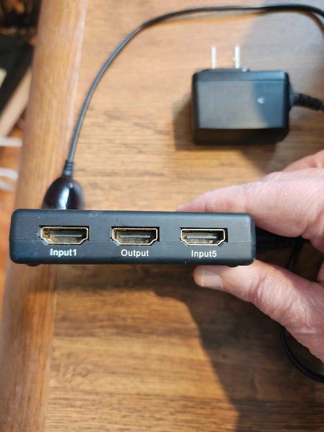 I'm selling a used PORTTA 6x1 HDMI Switcher, perfect for expanding your HDMI inputs. It has 6 inputs and 1 output, and comes with a remote for easy switching. This switcher is in good condition and works perfectly. * 6 HDMI inputs, 1 HDMI output * Supports 1080p, 4K, and 3D * Includes remote control * Plug and play, no driver needed I'm pricing this at $30. If the ad is up, it's available!