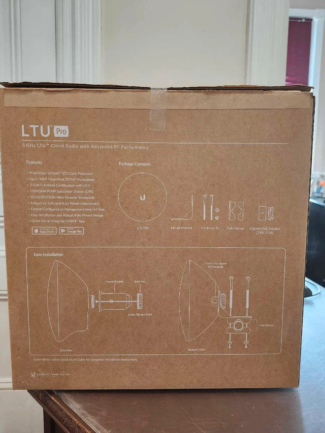 I'm offering a new Ubiquiti LTU Pro 5 GHz LTU Client Radio. This radio features advanced RF performance. I am looking to sell it for $350. Features: * Proprietary Ubiquiti LTU Core Processor * Up to 500+ Mbps Real TCP/IP Throughput * 5 GHz Full-Band Certification with DFS * 1024QAM PtMP Subscriber Station (CPE) * 10/20/30/40/50 MHz Channel Bandwidth * Frequency Split and Auto Power Adjustments * Central Configuration Management from AP Side * Easy Installation and Robust Pole Mount Design * Quick Setup Using the UMNS App