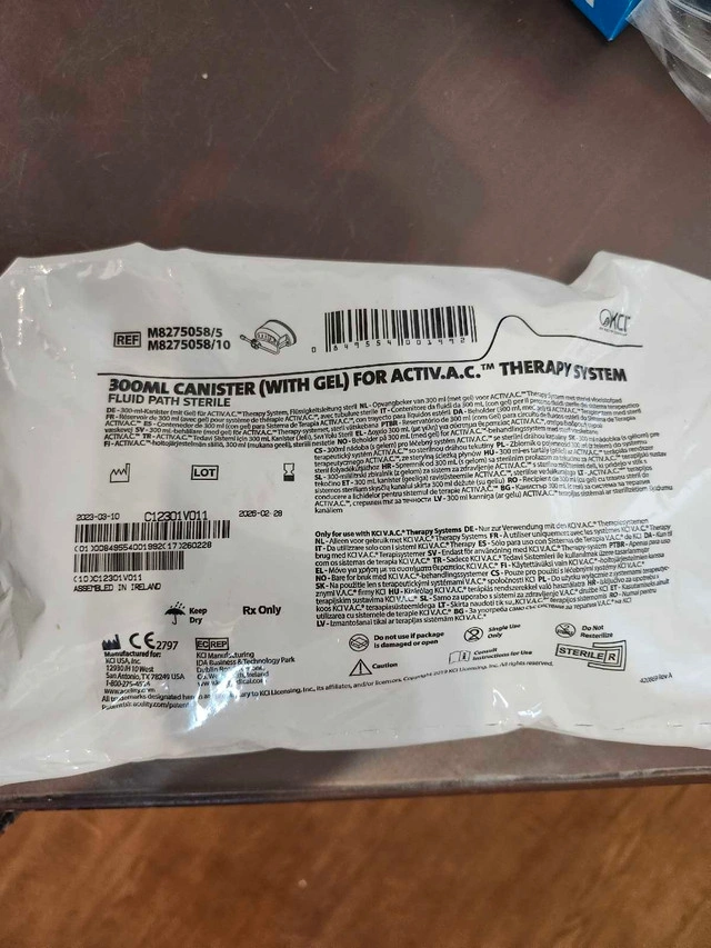 This is a new and sterile 300ML canister with gel for the ACTIV.A.C. therapy system, ensuring optimal performance and hygiene. Ideal for medical professionals and caregivers. * 300ML Capacity * Sterile Packaging * With Gel * For use with ACTIV.A.C. Therapy System