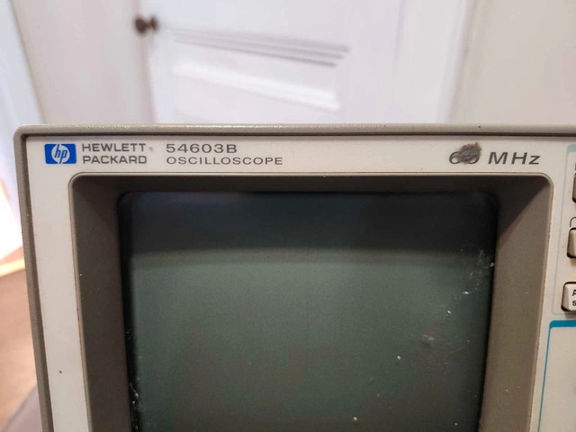 This is a used Hewlett Packard 54603B Oscilloscope, perfect for electronics enthusiasts and professionals alike. It is in fair condition, but fully functional. If you're looking for a reliable tool to visualize electrical signals, this oscilloscope is a great choice. If the ad is up, it's still available! Please note that this listing is for a business, I'm not selling it personally. Please kindly call the phone number listed on the ad should you have any questions about this item.