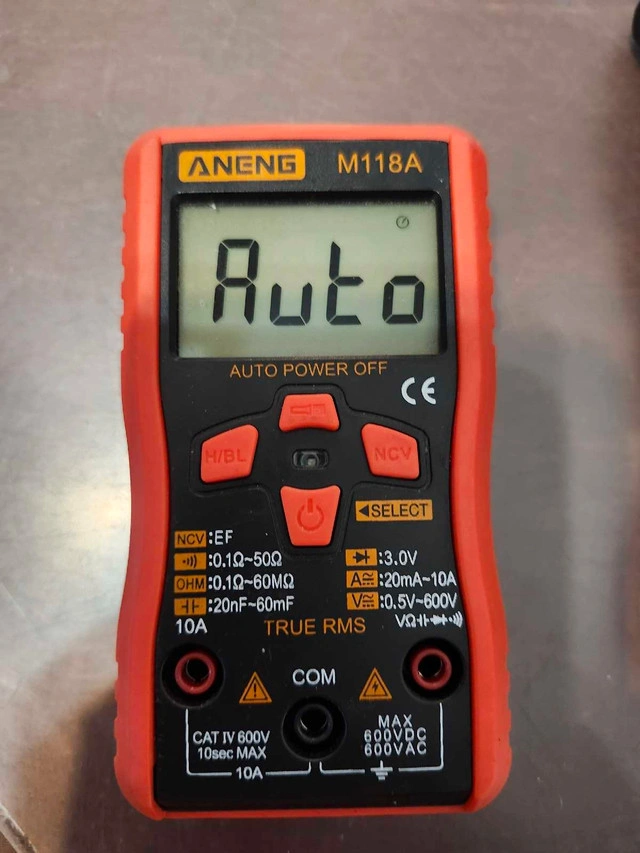 This Aneng M118A Digital Multimeter is designed to accurately measure AC/DC Voltage, Current, Resistance, Continuity, Capacitance, and Frequency. It's perfect for diagnosing electrical issues in vehicles, households, and more. This is a used unit in great working condition, ready for your next project. Key features include: * True RMS for accurate AC measurements * Auto-ranging for ease of use * Built-in non-contact voltage detection (NCV) * Data hold function * Backlight LCD screen * Portable and compact design