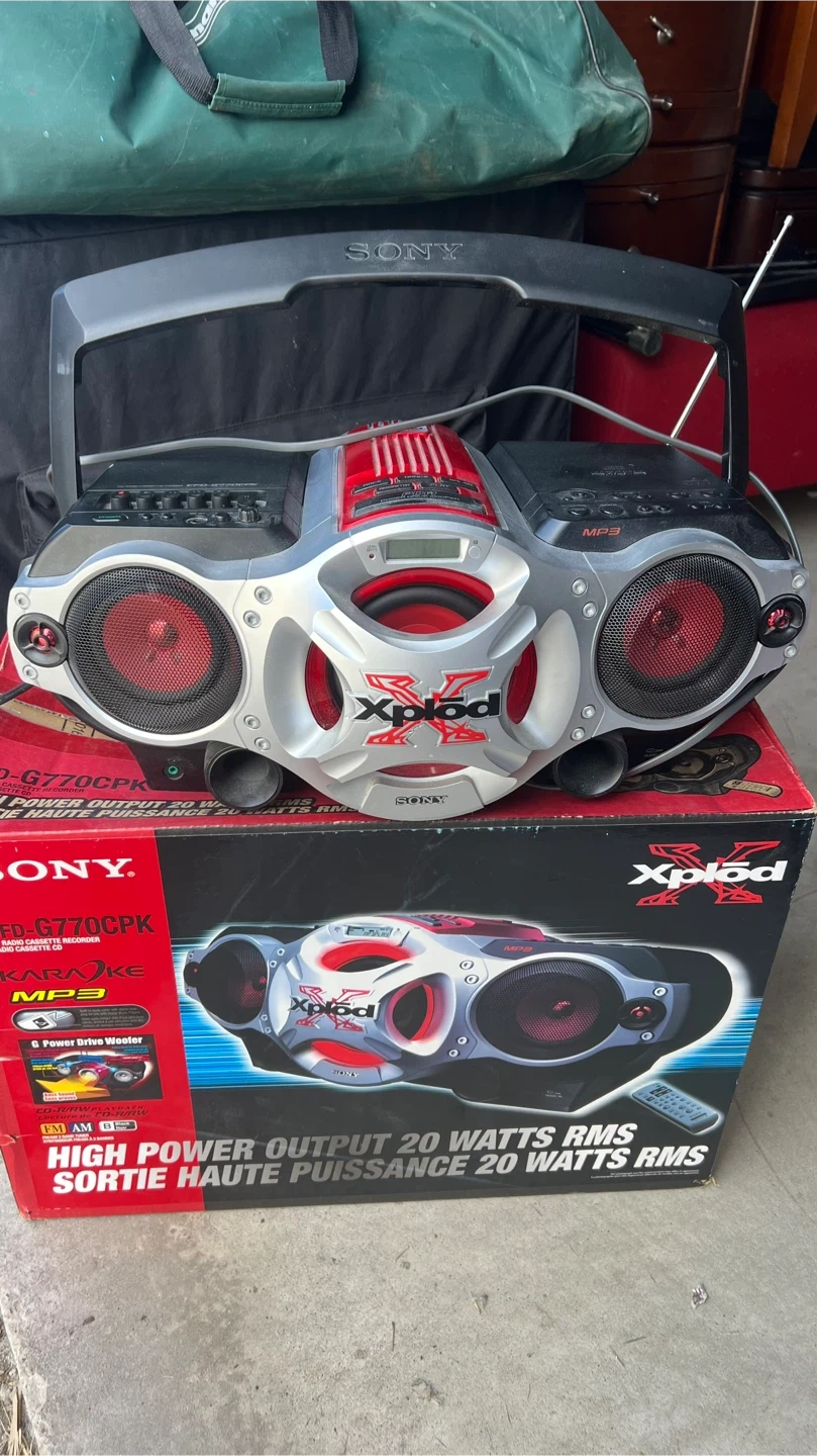337Selling a Sony Xplod CFD-G770CPK boombox! It's in great shape and comes with the remote. This high-power boombox has a 20 Watts RMS output. It also has a 3 Power Drive Woofer. Comes with the original box!