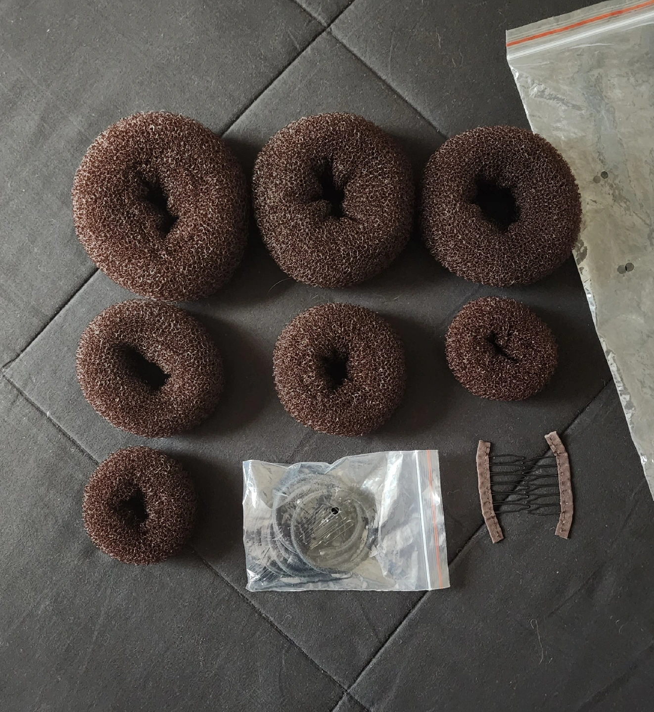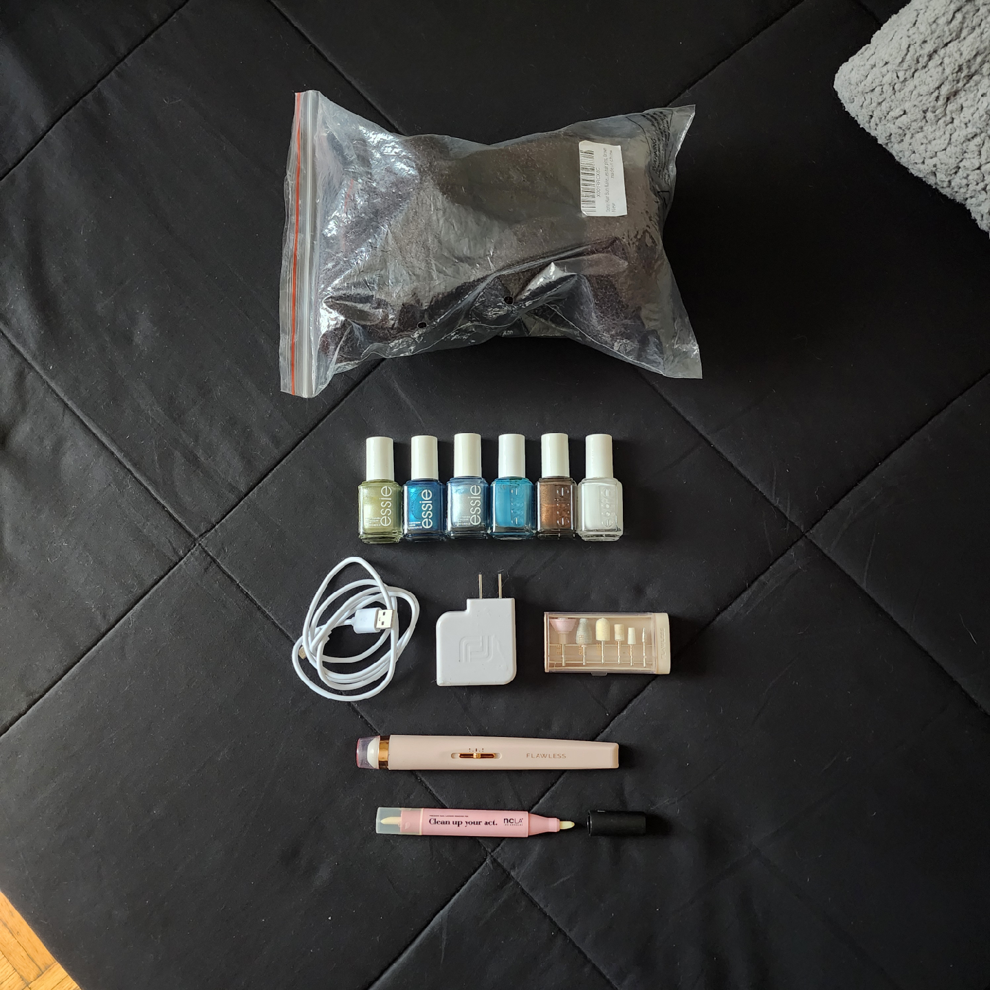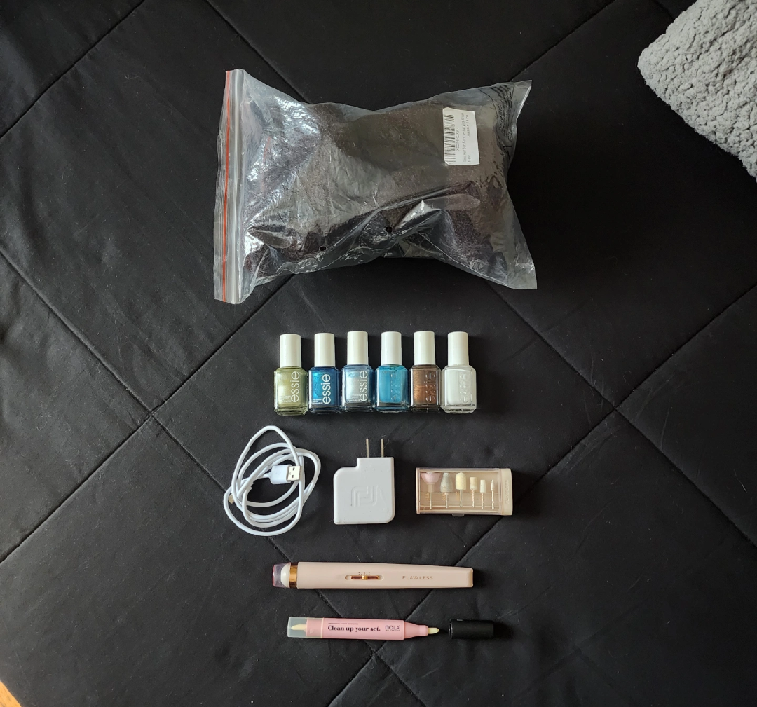 Giving away a collection of hair styling items and nail products! Included are several hair donut bun makers in brown, along with some hairpins and accessories. Also, there's a set of Essie nail polishes in various shades of blue, green, brown and white. To complete the set, I'm including a Flawless nail kit with a charger and some nail cleaning tools and a NCLA Clean up your act marker.