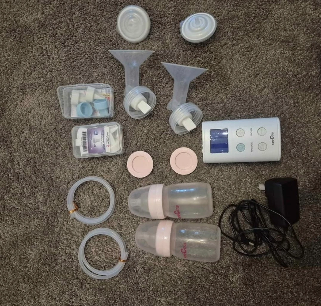 Selling a Spectra 9 Plus portable and rechargeable electric breast pump. It comes with all the parts you see in the pictures, including the box. Also included is a Maymom MyFit Flange Kit suitable for Spectra pumps.