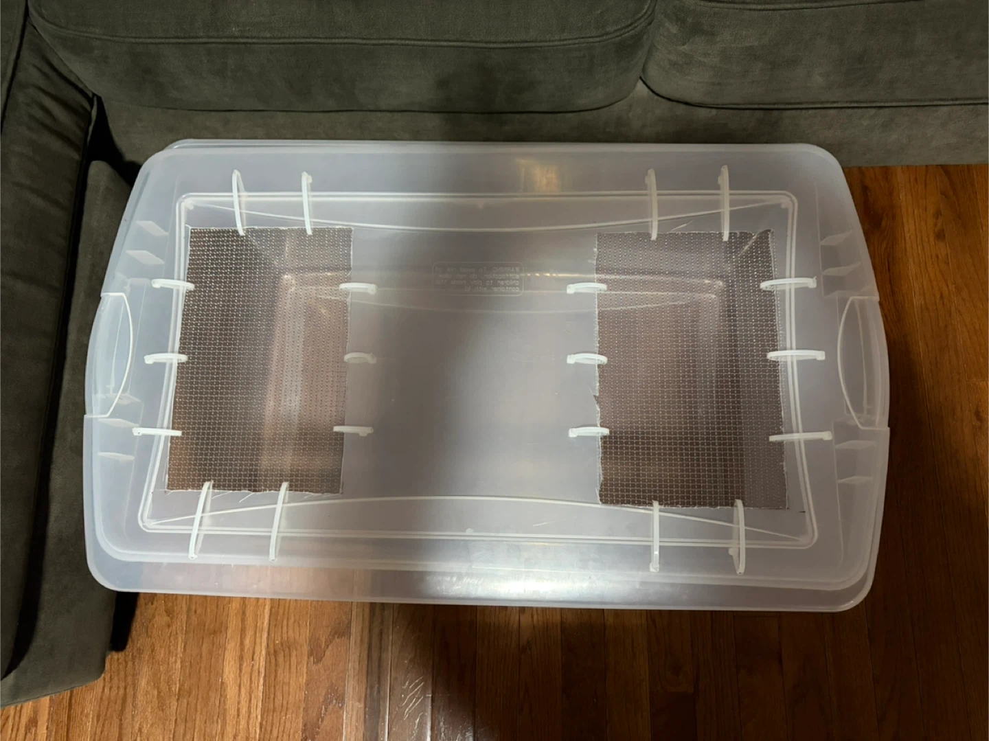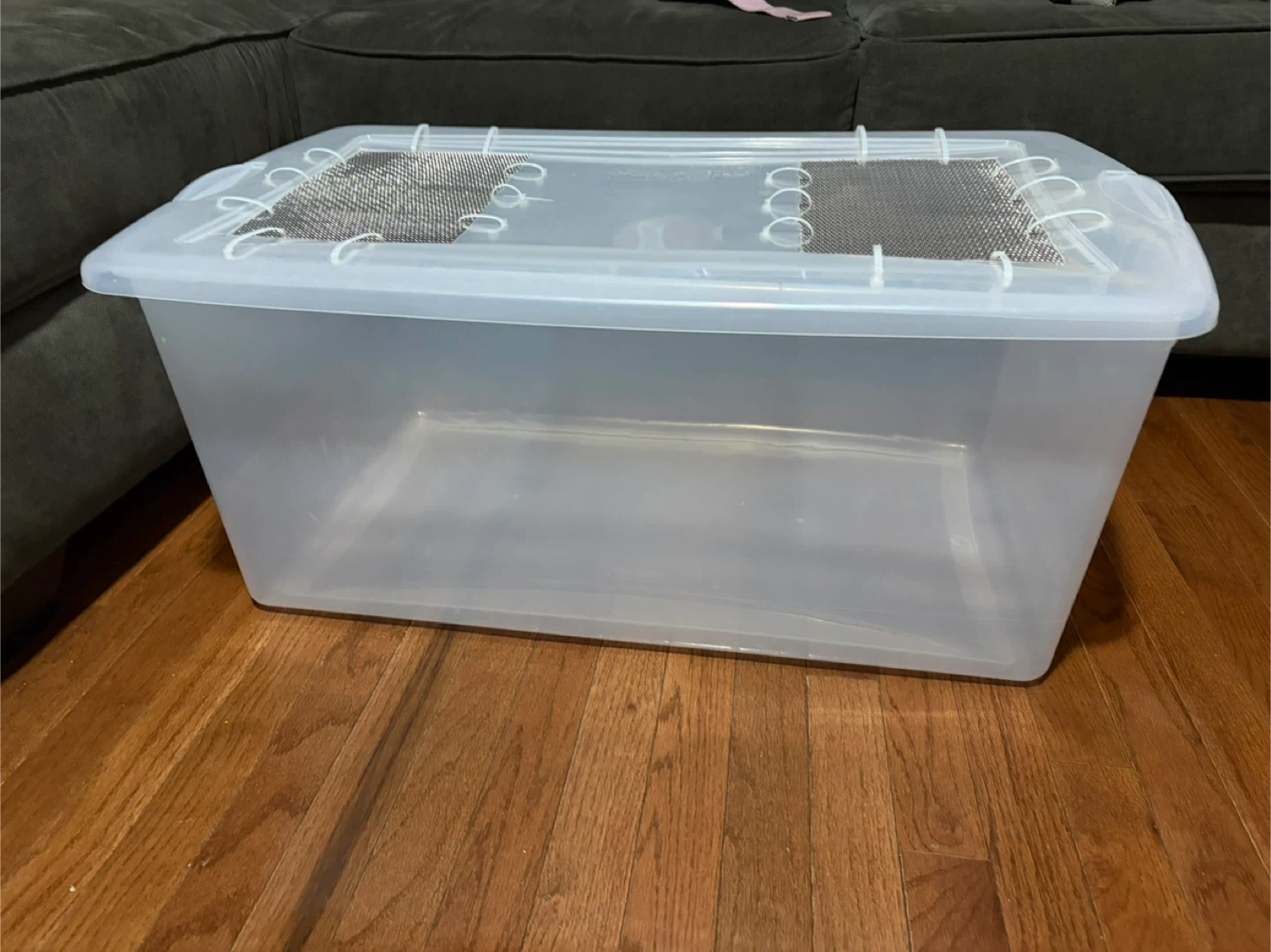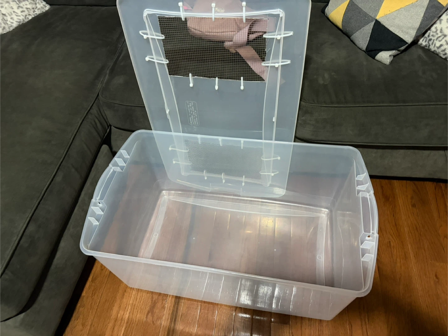 🥕Great make shift pet home!! Clear Plastic bin with mesh lid