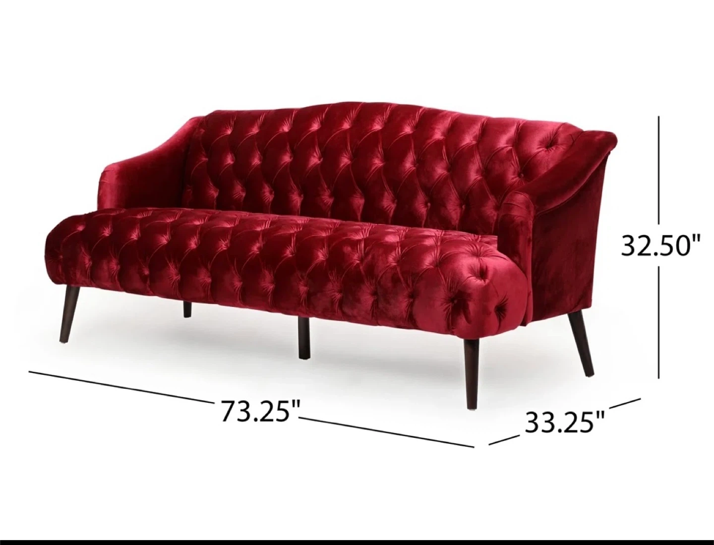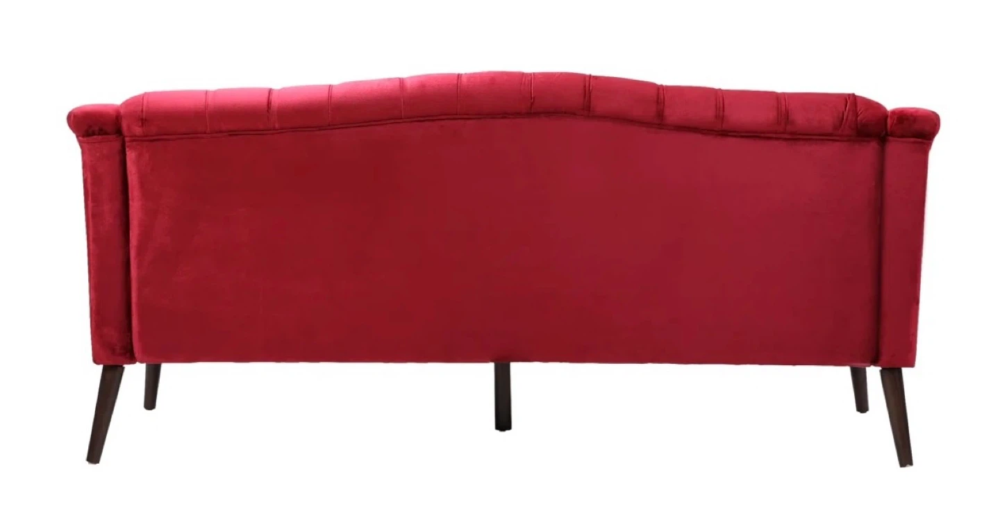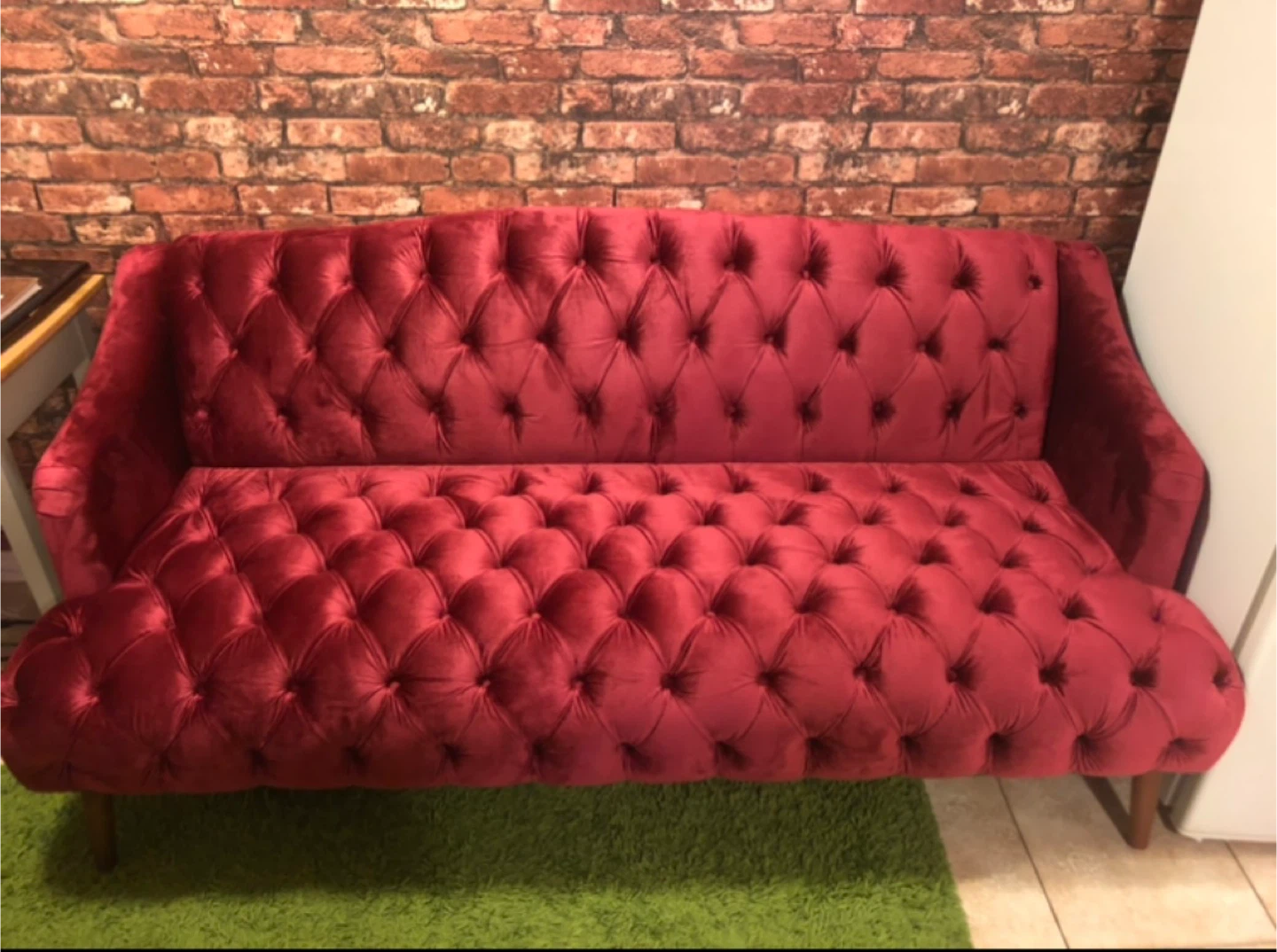 Selling a beautiful red velvet tufted sofa from Rosdorf Park. It's in great shape and would add a touch of elegance to any living space.
