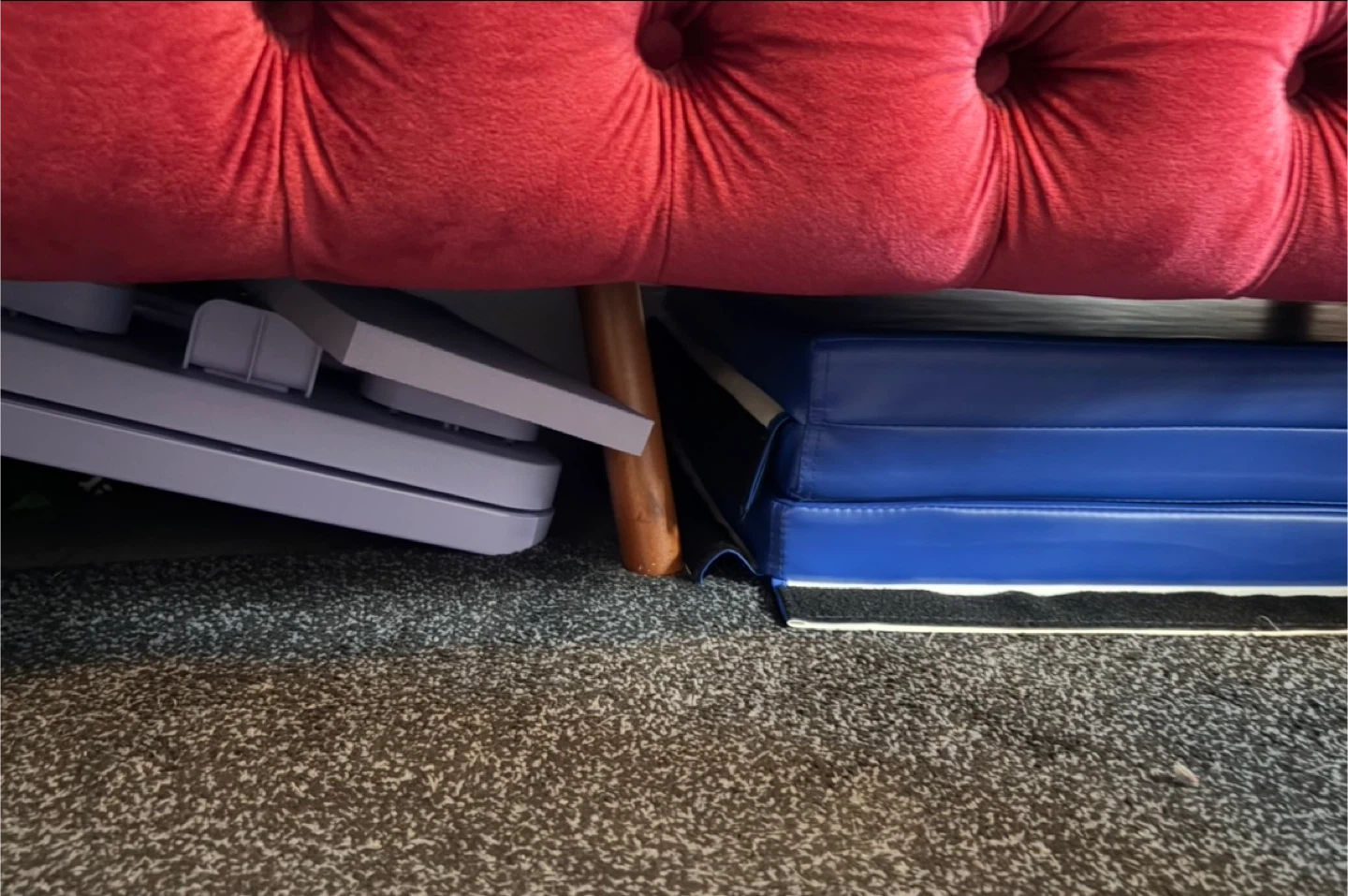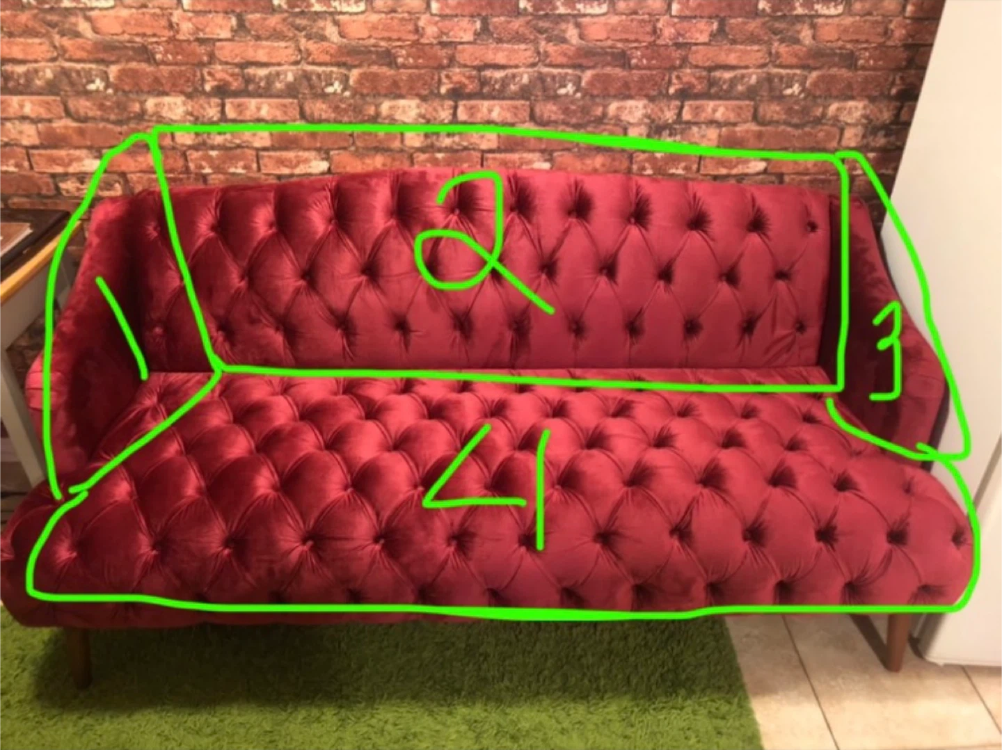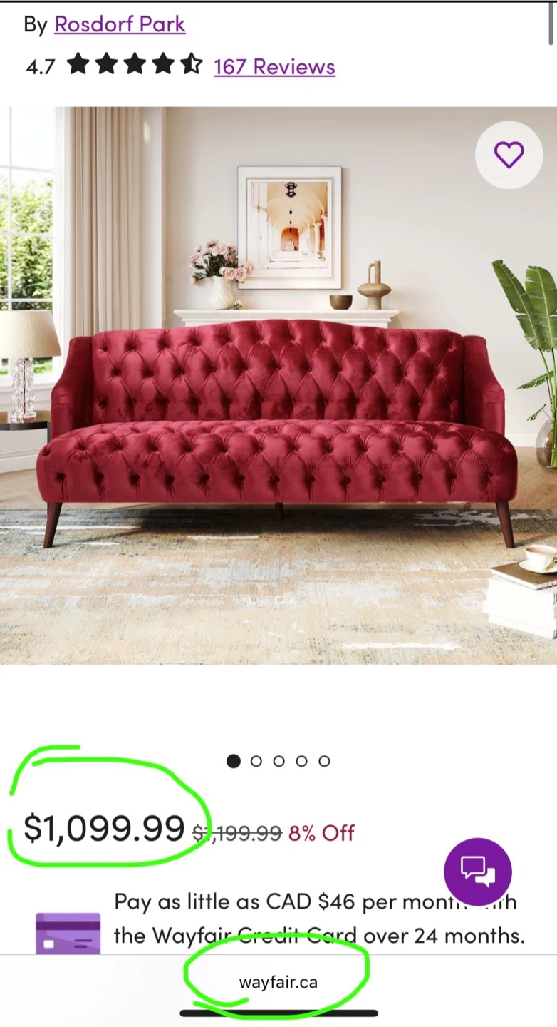 Selling a beautiful red velvet tufted sofa from Rosdorf Park. It's in great shape and would add a touch of elegance to any living space.