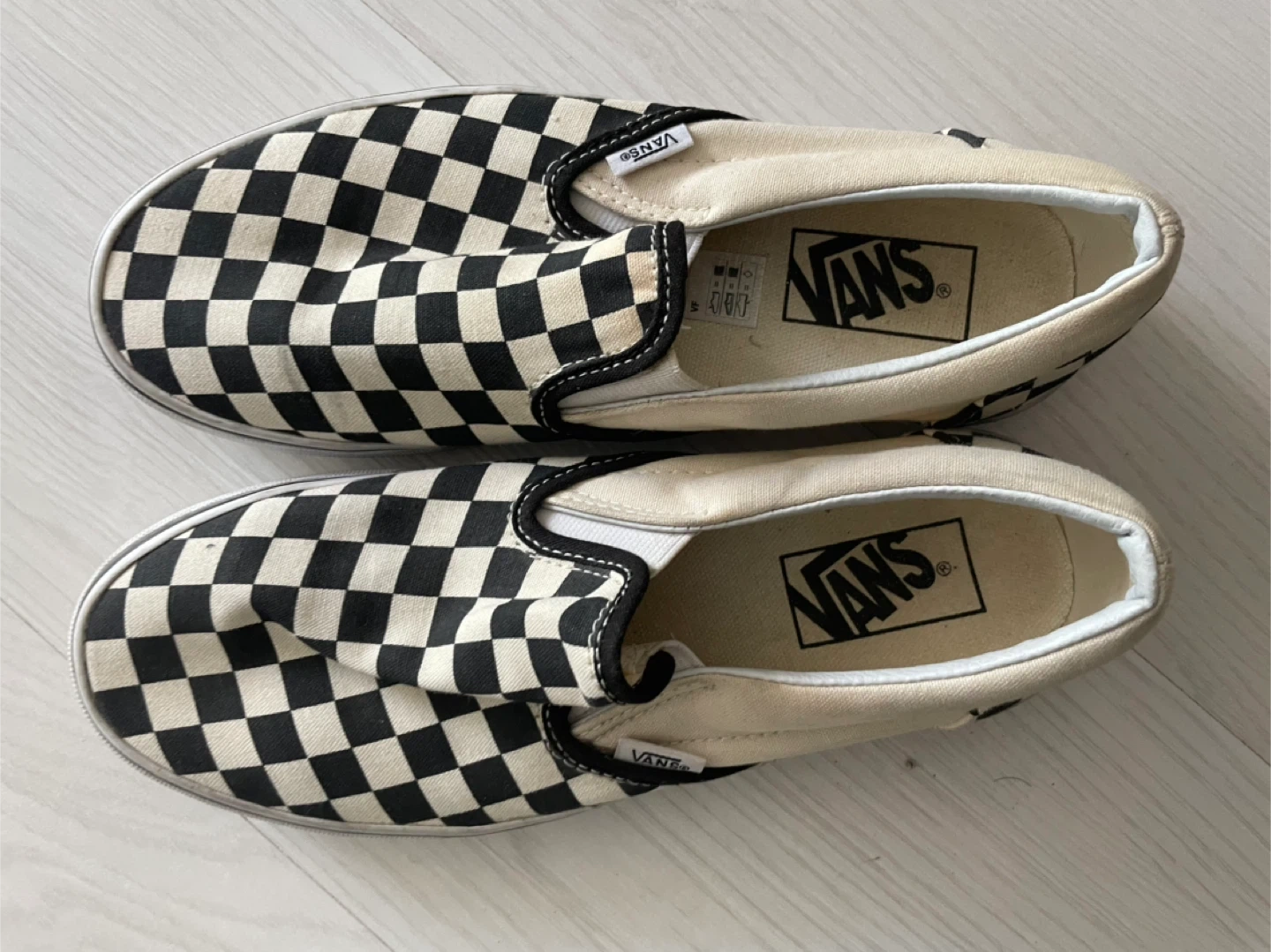 111Selling a pair of Vans checkerboard slip-on shoes. They are women's size US 7.5 or Men’s 6.0. The shoes are in very good condition and ready for a new home!