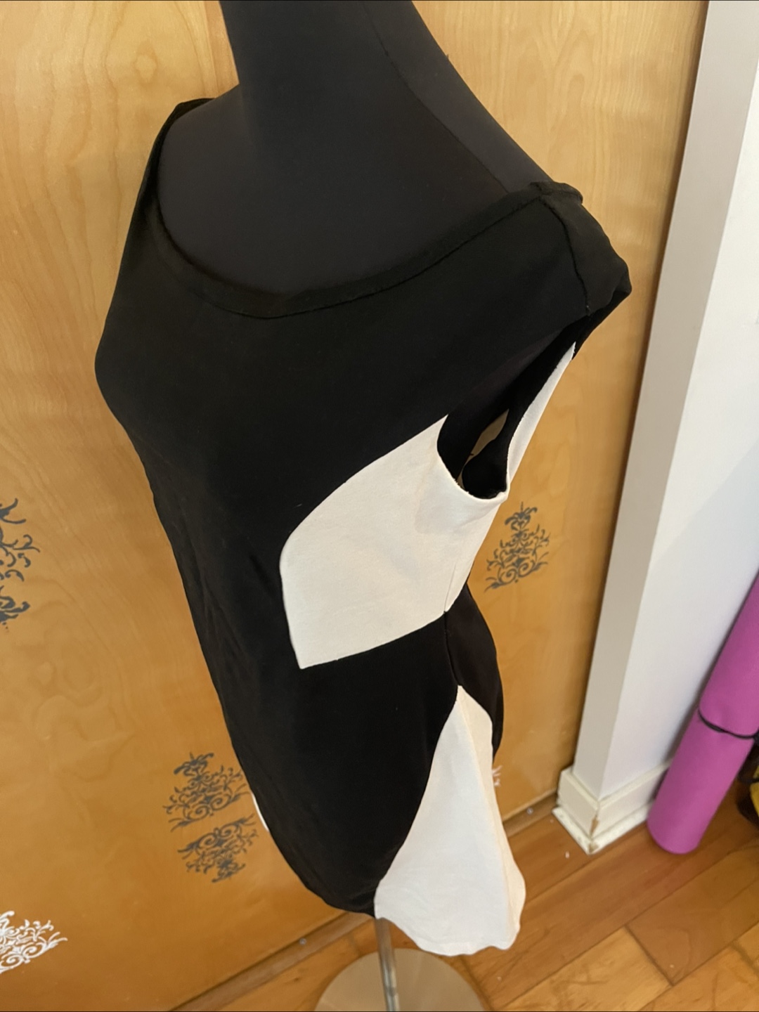 Vintage 2000s Y2K Black & White Bodycon Sleeveless Mini Dress Cotton S/M