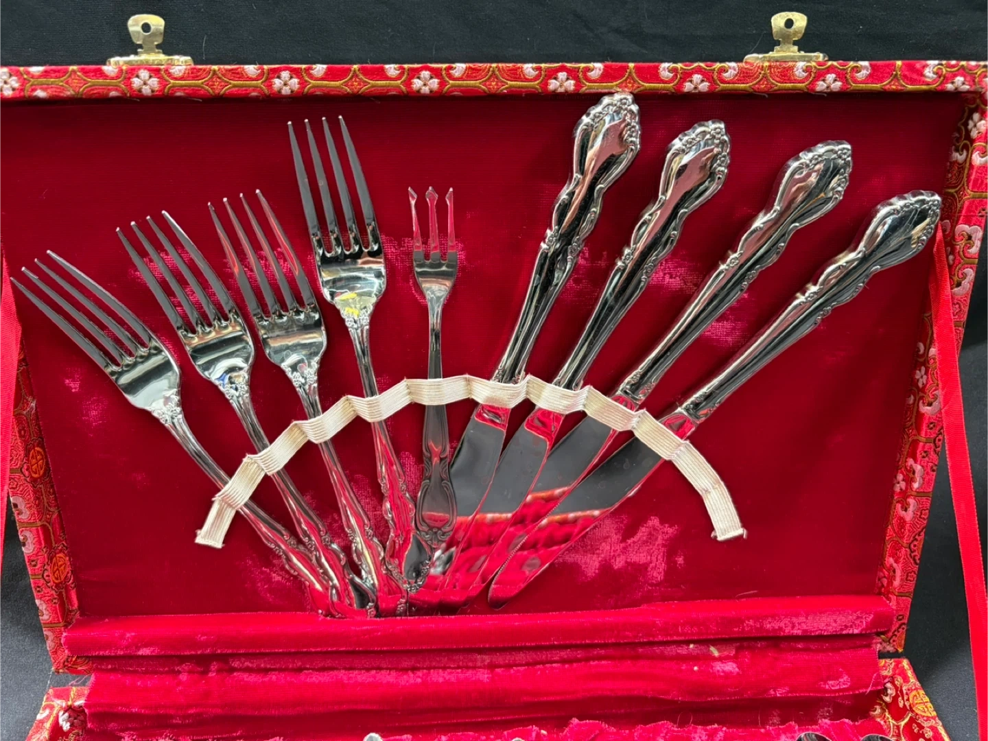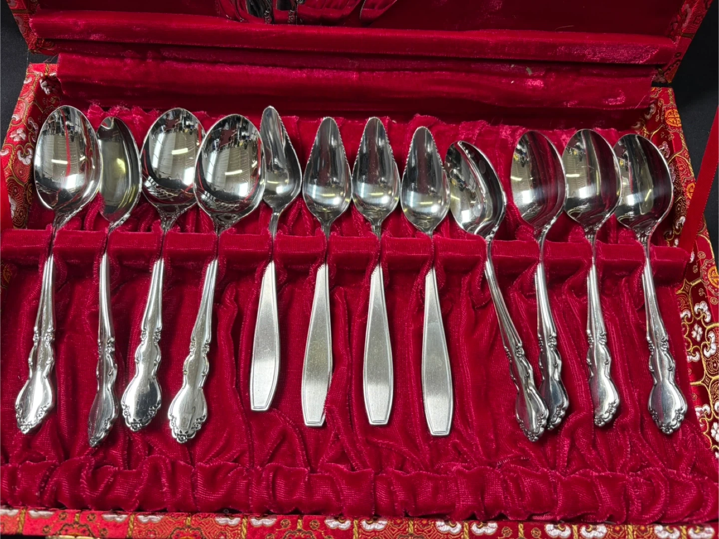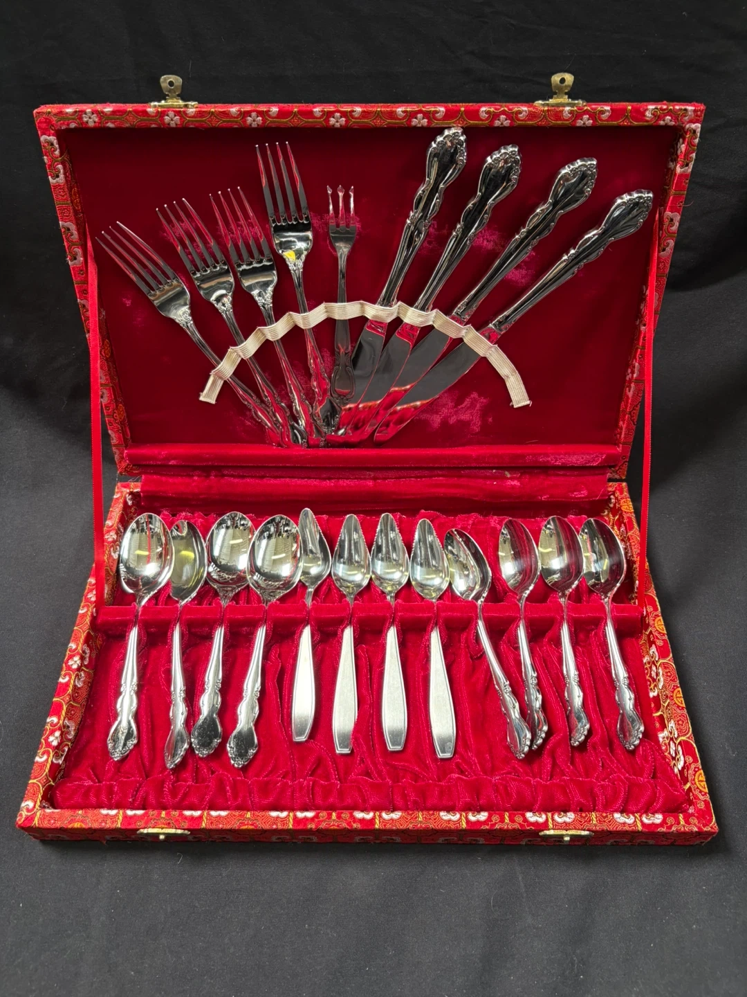 🥕like new Vintage Silverware Set in Decorative Box Selling a vintage silverware set. It comes in a beautiful decorative box with a red velvet interior. The set includes knives, forks, and spoons, all in good condition. Perfect for adding a touch of elegance to your dining experience! $20 Pick up Victoria Park & O’Connor area