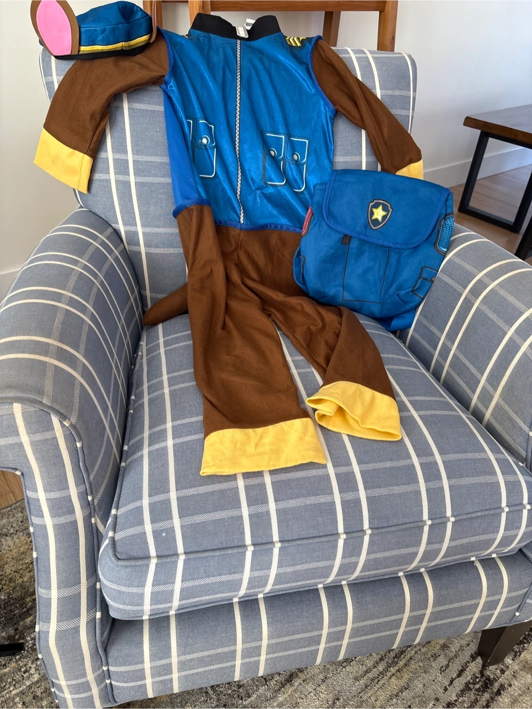 Paw Patrol Chase costume includes the hat, backpack and jumpsuit! Perfect for dress-up or Halloween