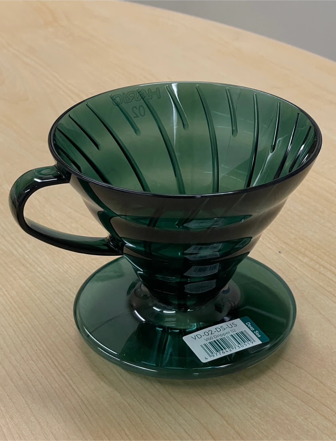 Brew a great cup of coffee on the go at the office or whole camping. Selling a new Hario V60 Drip Decanter in dark green! It comes with the original box. Perfect for brewing a delicious pour-over coffee right into the decanter. It is size 02. Get ready to enjoy your morning coffee!