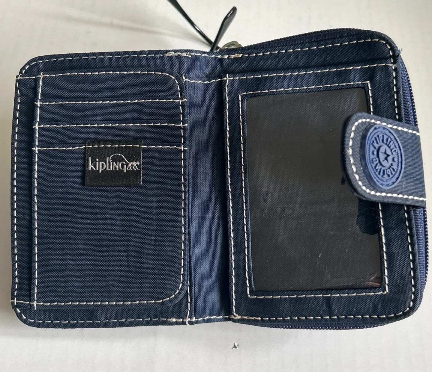 Selling a Kipling wallet in navy blue.
