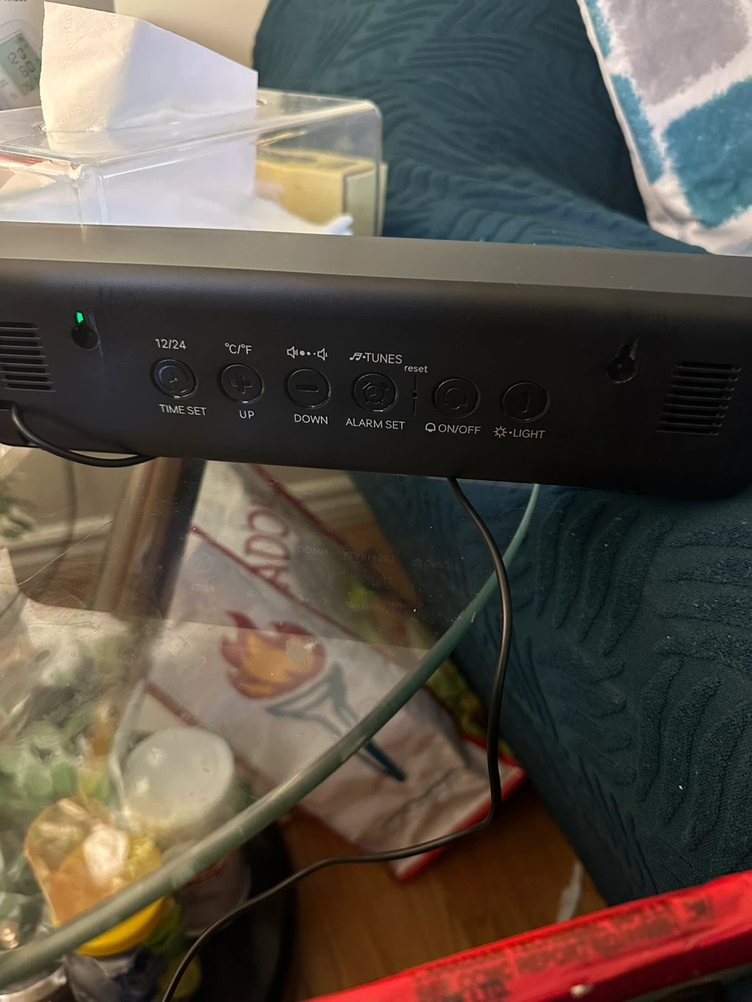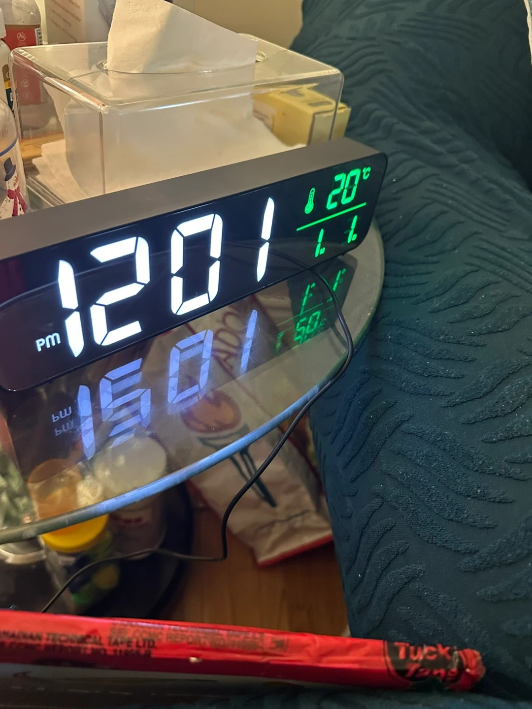 237Musicbee digital alarm clock with large LED display! It shows the time, temperature, and has alarm functions. Perfect for your bedside table or desk!