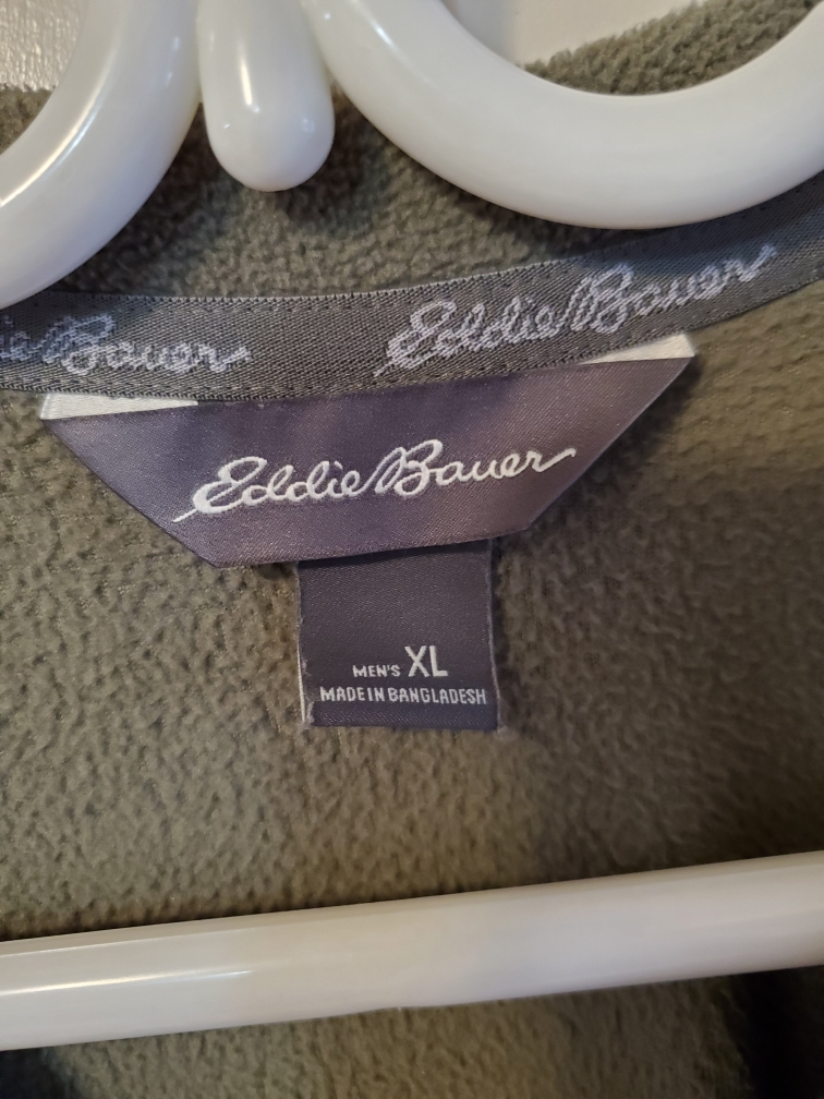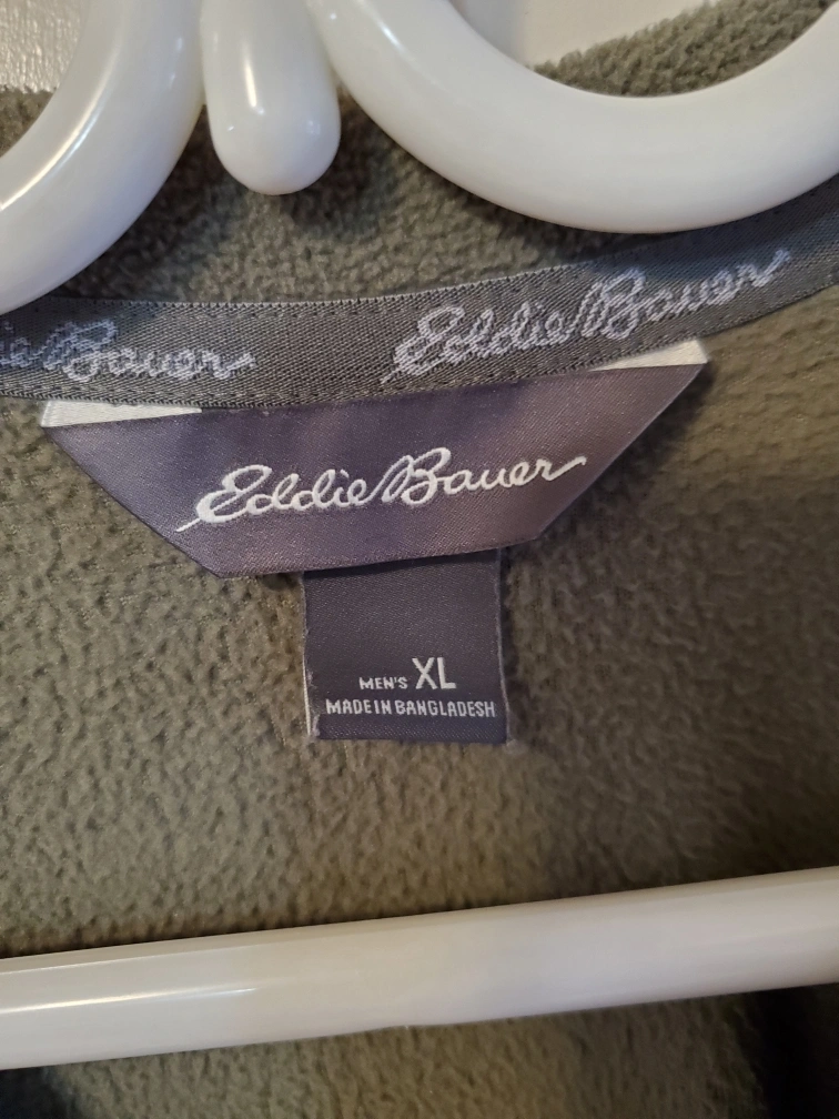 Selling an Eddie Bauer fleece pullover in men's size XL. It's in great condition and ready for a new home! The material is soft and cozy, perfect for layering during the cooler months. Like new, only worn a couple times!