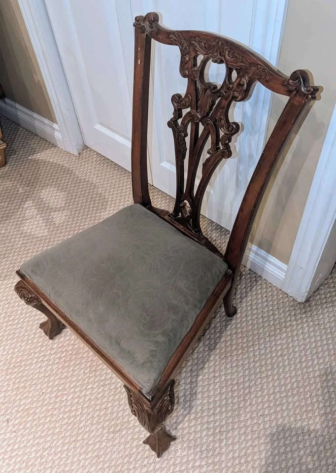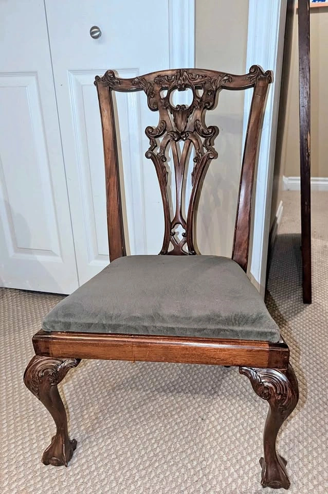 Antique! Mahogony Chippendale-Style Carved Side Chair