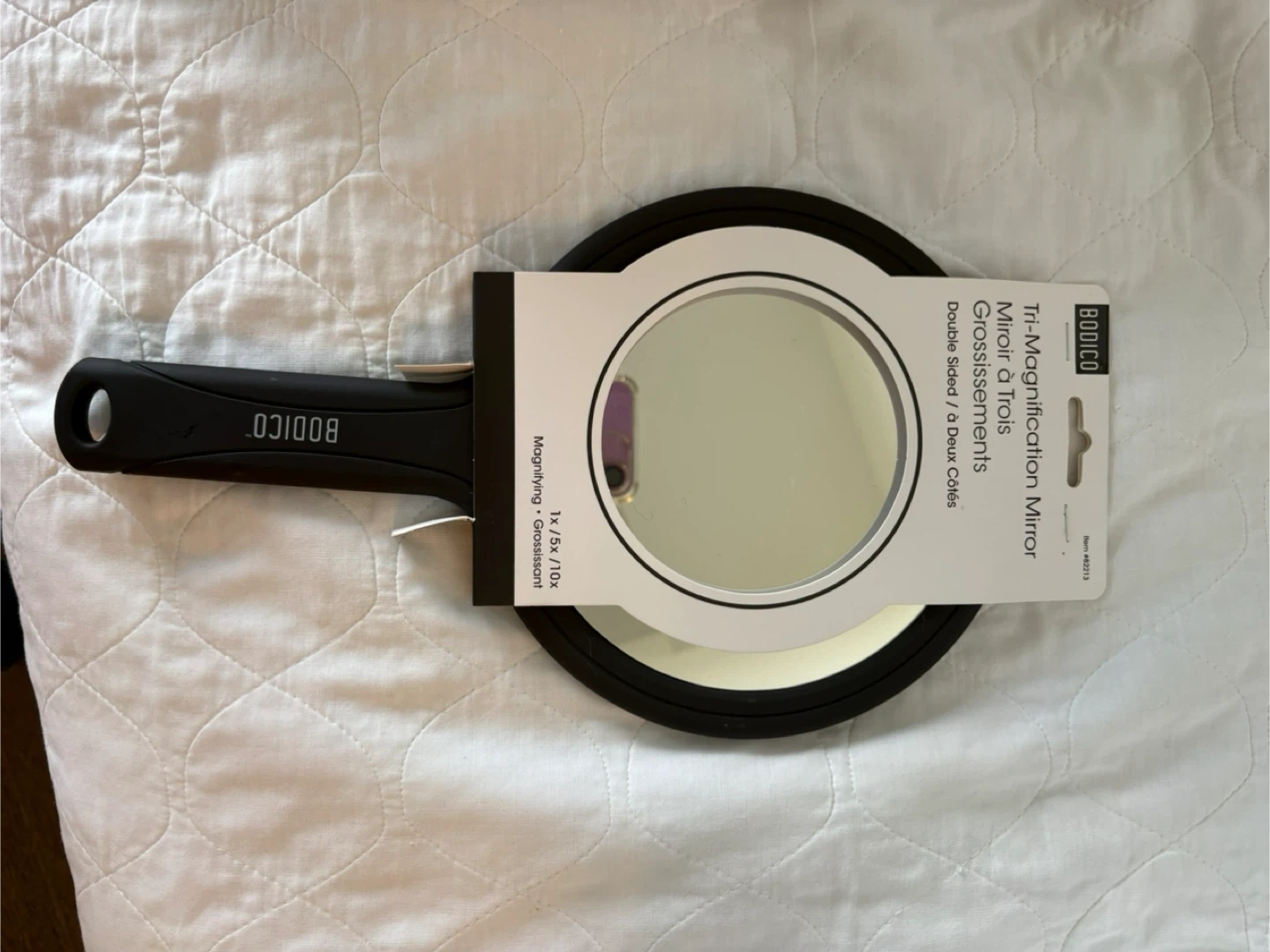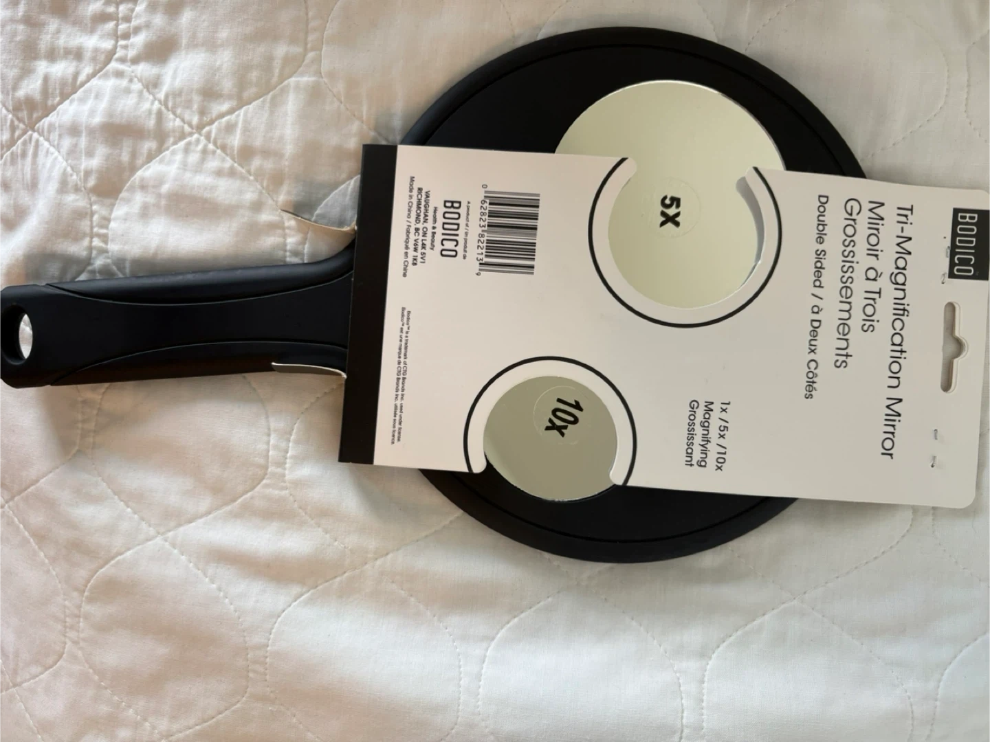 Selling a brand new Bodico Tri-Magnification Mirror! It's double sided and has 1x, 5x, and 10x magnification options