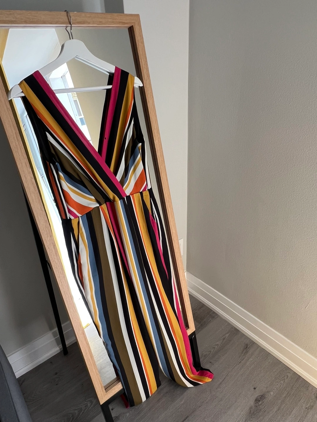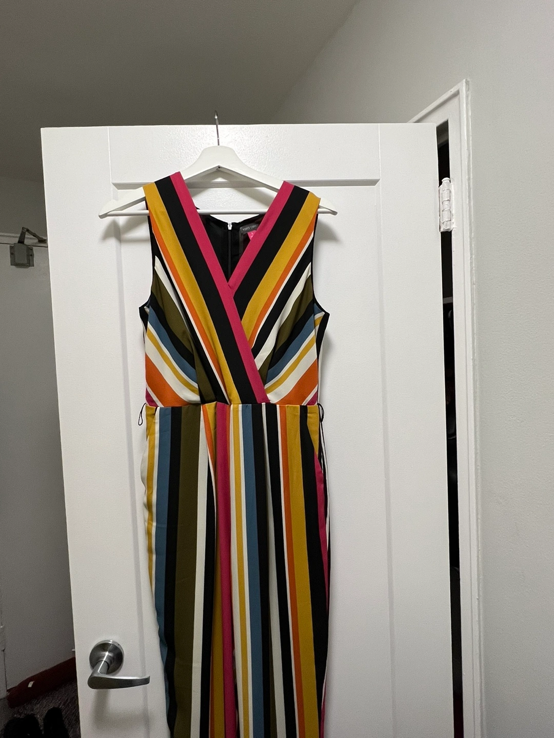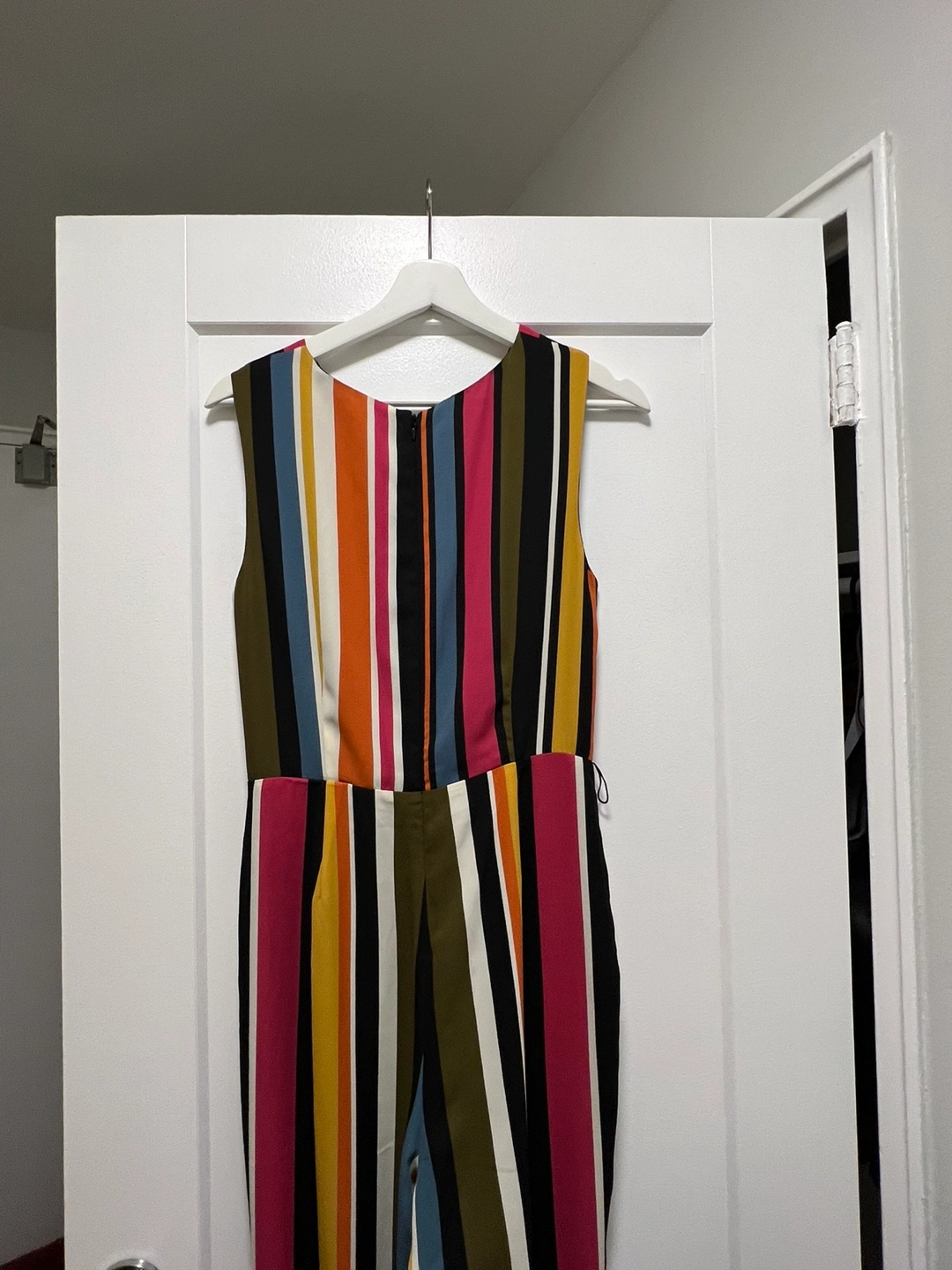 New, never worn. I bought this jumpsuit with the hope that I would ever fit in it, I liked it so much. But it’s been just hanging in my wardrobe for more than a year now. I lost its best somewhere during moving though. Original price $179+hst.