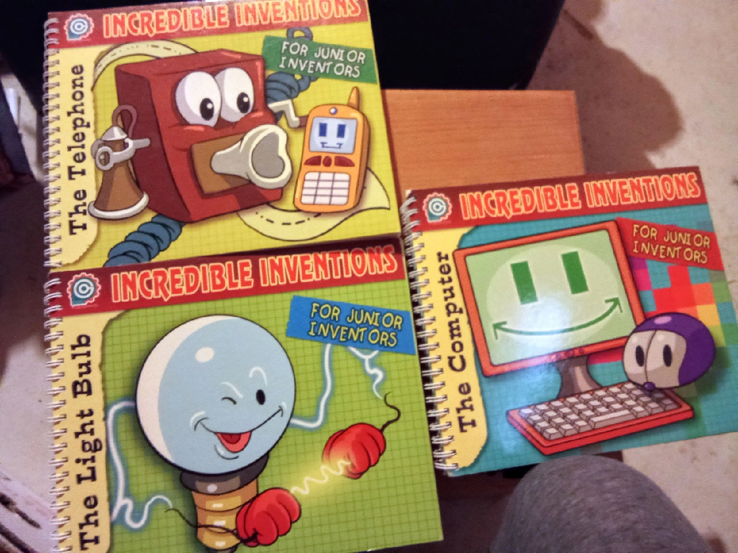 I'm selling a set of "Incredible Inventions" books designed for junior inventors! These books cover inventions like the telephone, the light bulb, and the computer. They're in great shape and ready to inspire young minds!