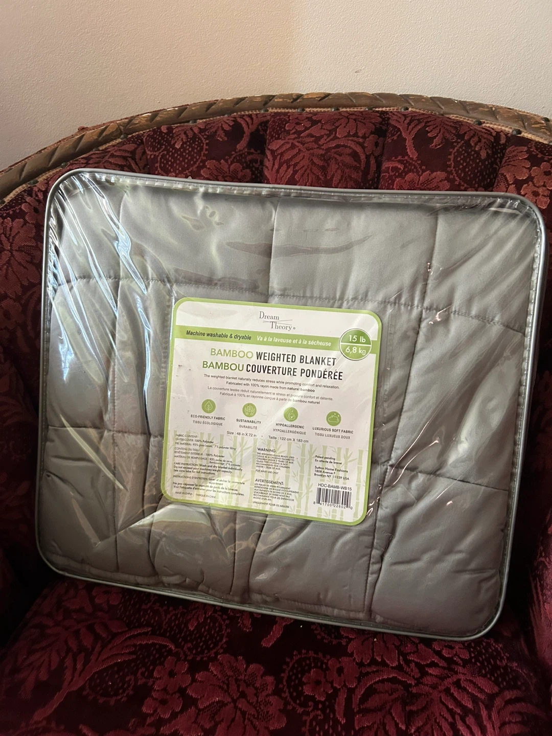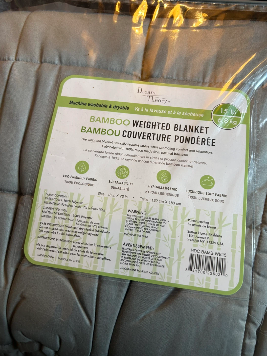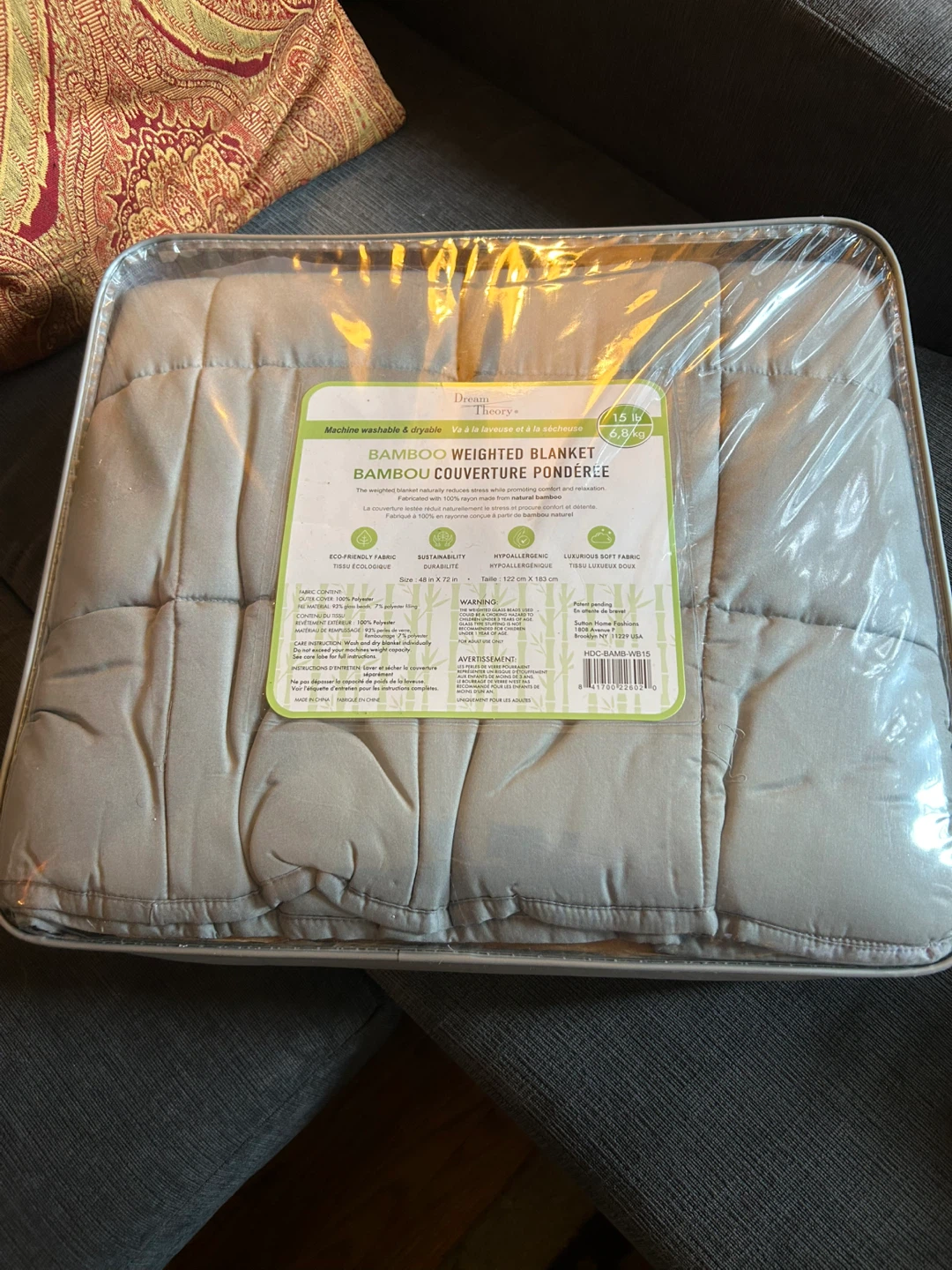 I'm selling a brand new Dream Theory bamboo weighted blanket! It's still in the original packaging.