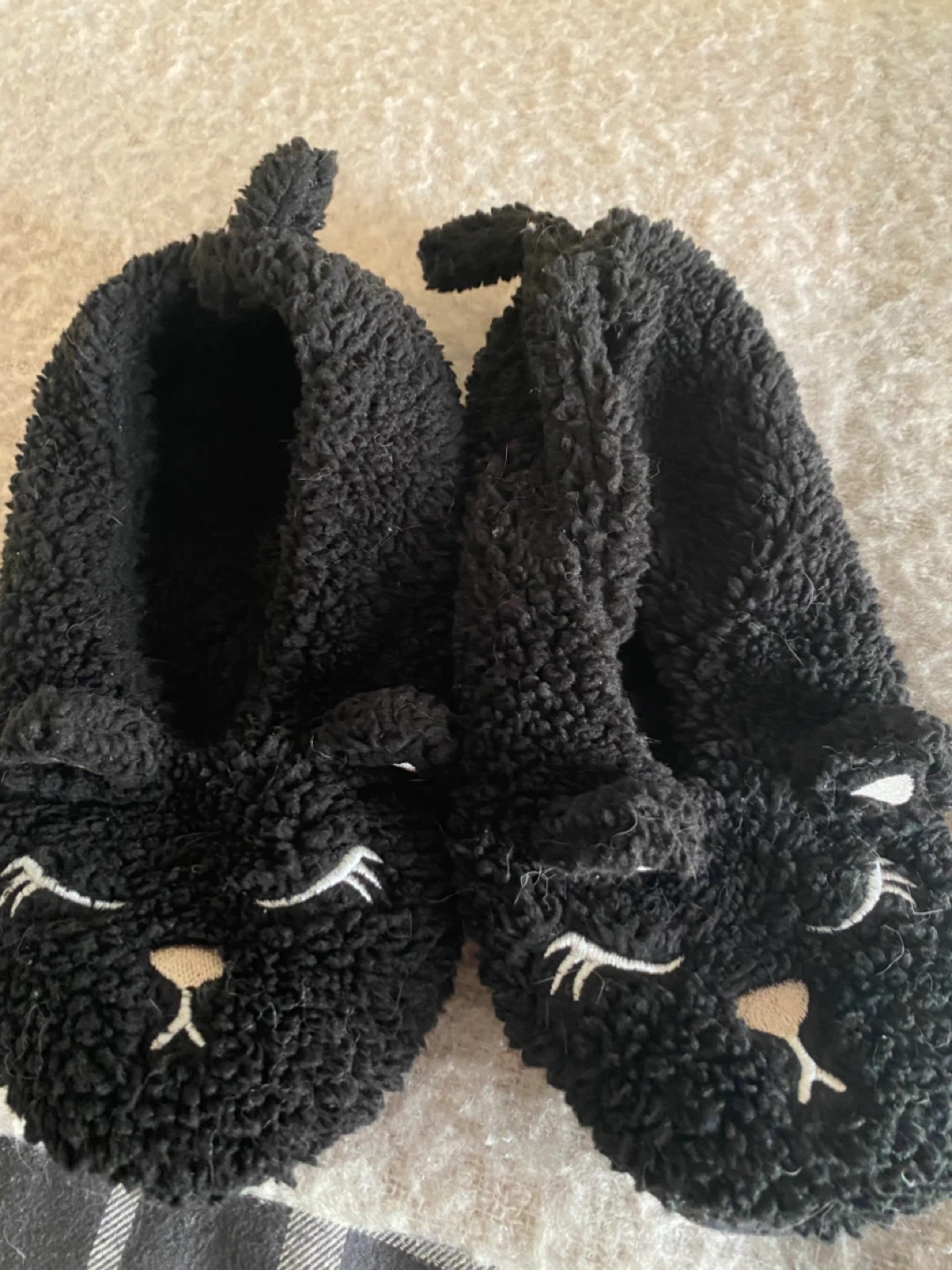 Super cute black cat slippers! They're a women's size 8 and in great condition. Perfect for keeping your feet warm and cozy on Halloween π or anytime!