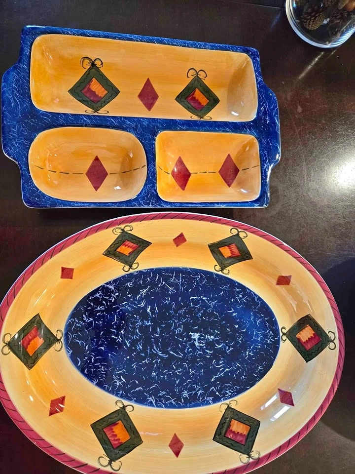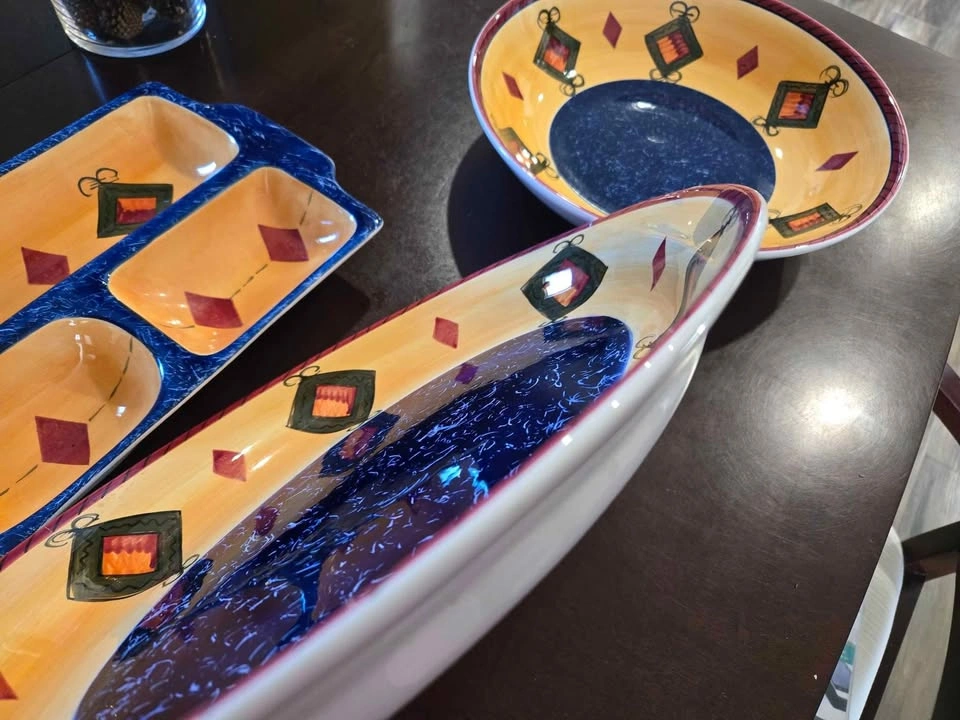 Buy & SellSet of 3 ServersSet of 3 Servers$50Set of 3 servers from Stokes Living Art, Loreto 3 section divided, 14" x 9" x 2" Oval dish, 16" x 12" x 2" Round dish, 12.5" x 12.5" x 3"0 chats·0 favorites·3 viewsSELLERHeidiDowntown50 reviewsWHERE TO MEETCheck Location