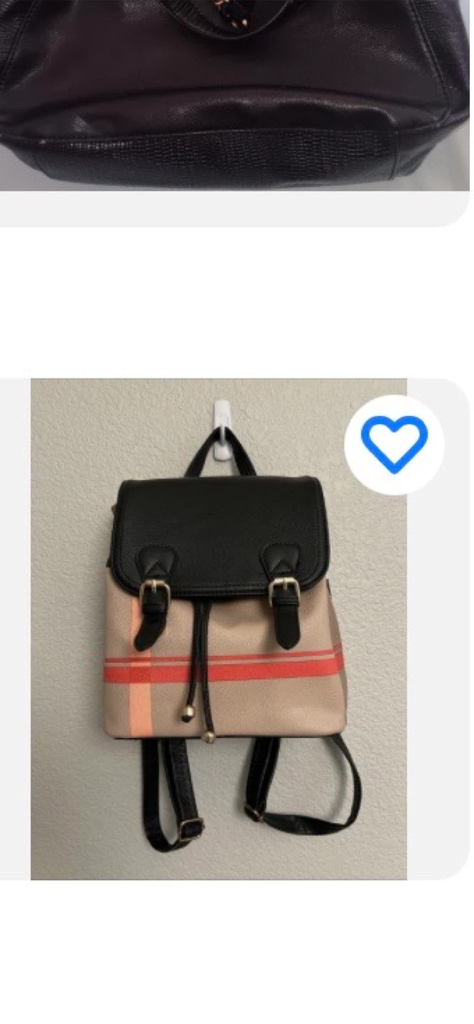 Cute Vegan Burberry inspired backpack purse with a black top and striped body. The interior lining features a Kate Hill design. Perfect for carrying your essentials!