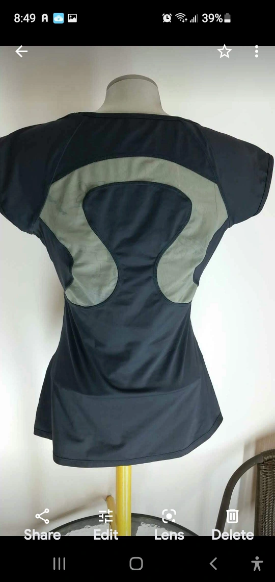 Selling a Lululemon athletic top in size 10 It's in great condition and perfect for workouts or casual wear! The design features a unique back detail with a breathable mesh panel. Comfortable and stylish!