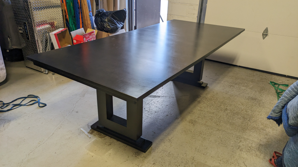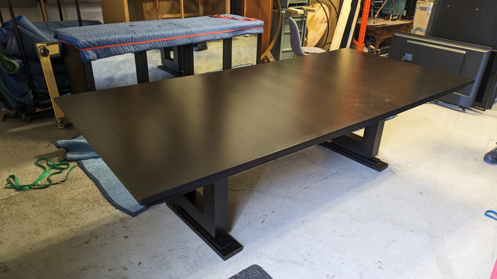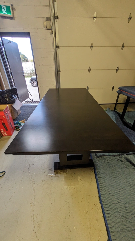 Here's a lovely dark brown dining table. It would be a great addition to any extra large dining room!