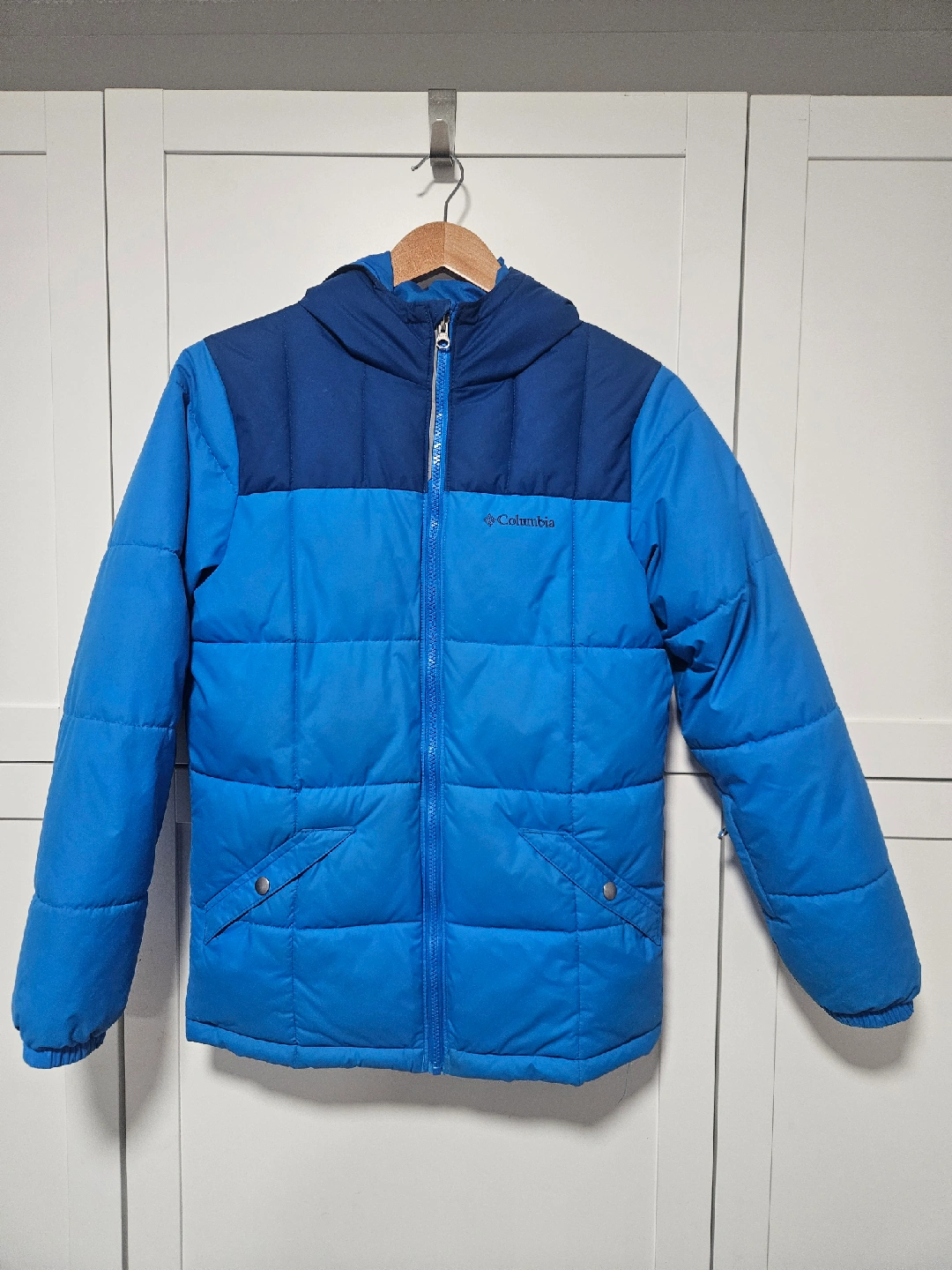 58Selling a Columbia puffer jacket in blue. Excellent condition. Size is L (Youth, 14/16). It's a stylish and practical choice for kids or teens.