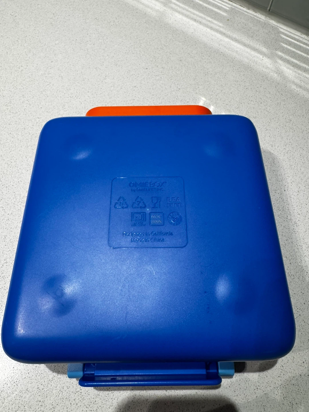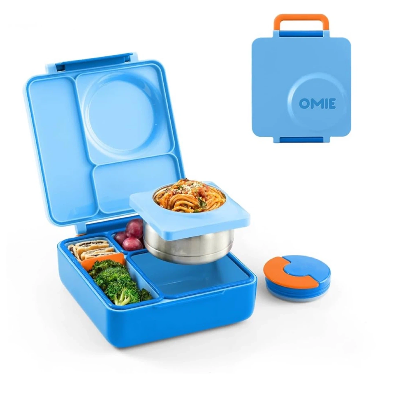 Selling a blue OmieBox bento lunch box! It's perfect for packing lunches with different compartments to keep food separate. It's insulated and leak-proof, plus it's BPA-free. The dimensions are 8.5" x 7.5".