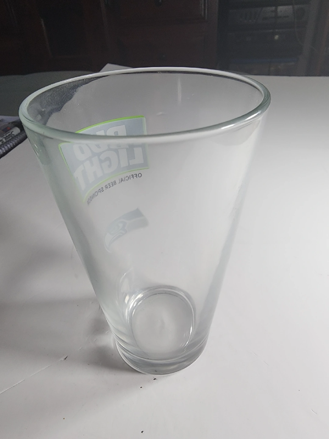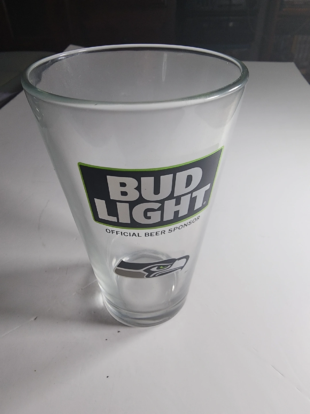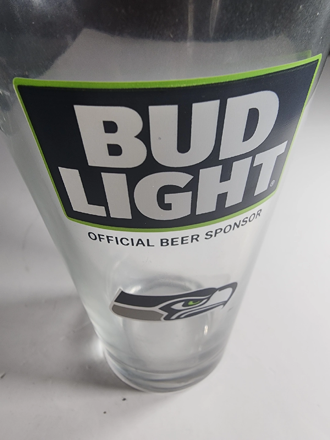 Selling a Bud Light pint glass featuring the Seattle Seahawks logo. It's in great shape and perfect for game days or just enjoying a cold drink