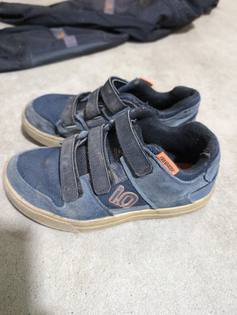15Selling a pair of Adidas Five Ten Freerider kids shoes. They show signs of wear, but still have lots of life left! Perfect for biking or casual wear.