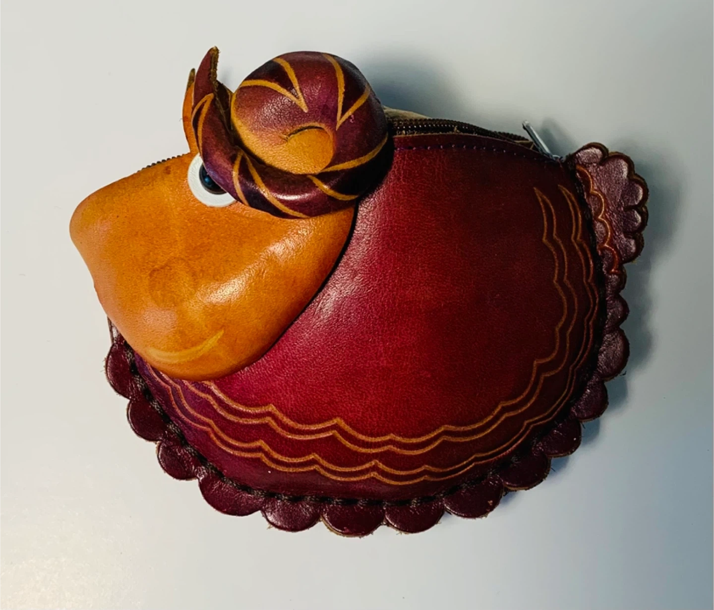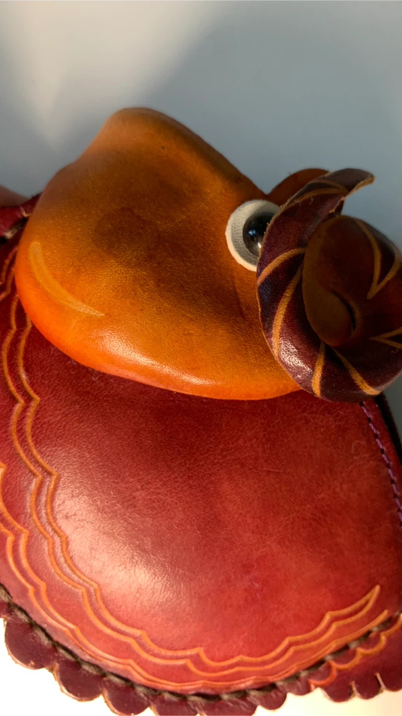 Check out this adorable handmade leather coin purse from Bulgaria! It's a unique and charming accessory to keep your change organized. The purse features detailed stitching and a cute sheep design. Perfect for adding a touch of whimsy to your everyday carry! The colour combination and craftsmanship of this art piece looks fabulous!