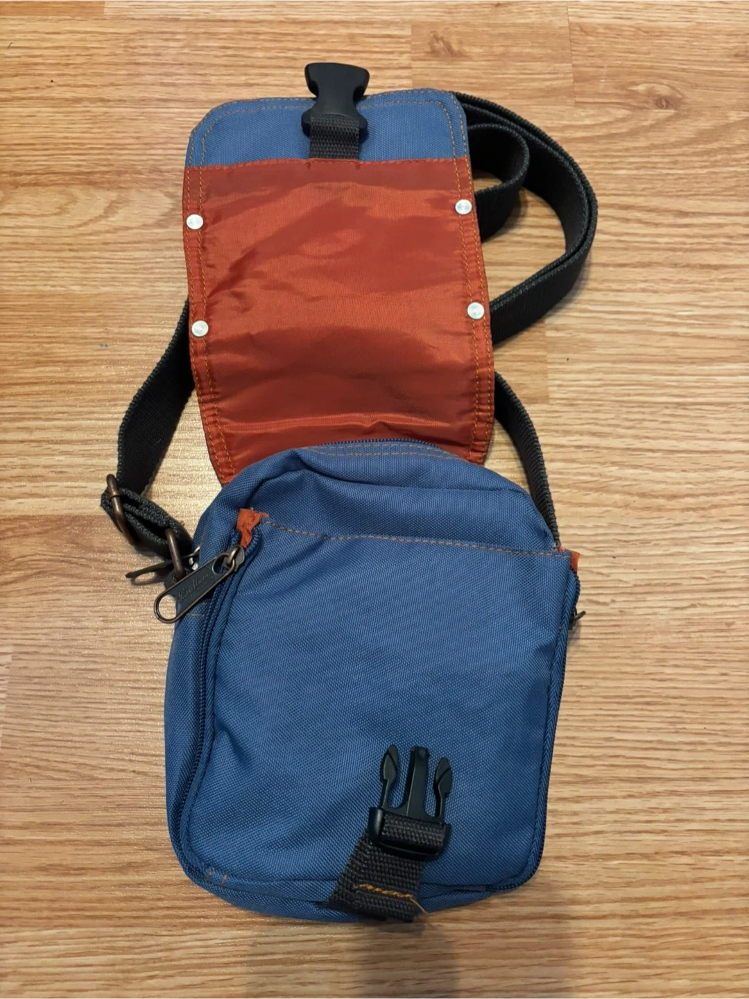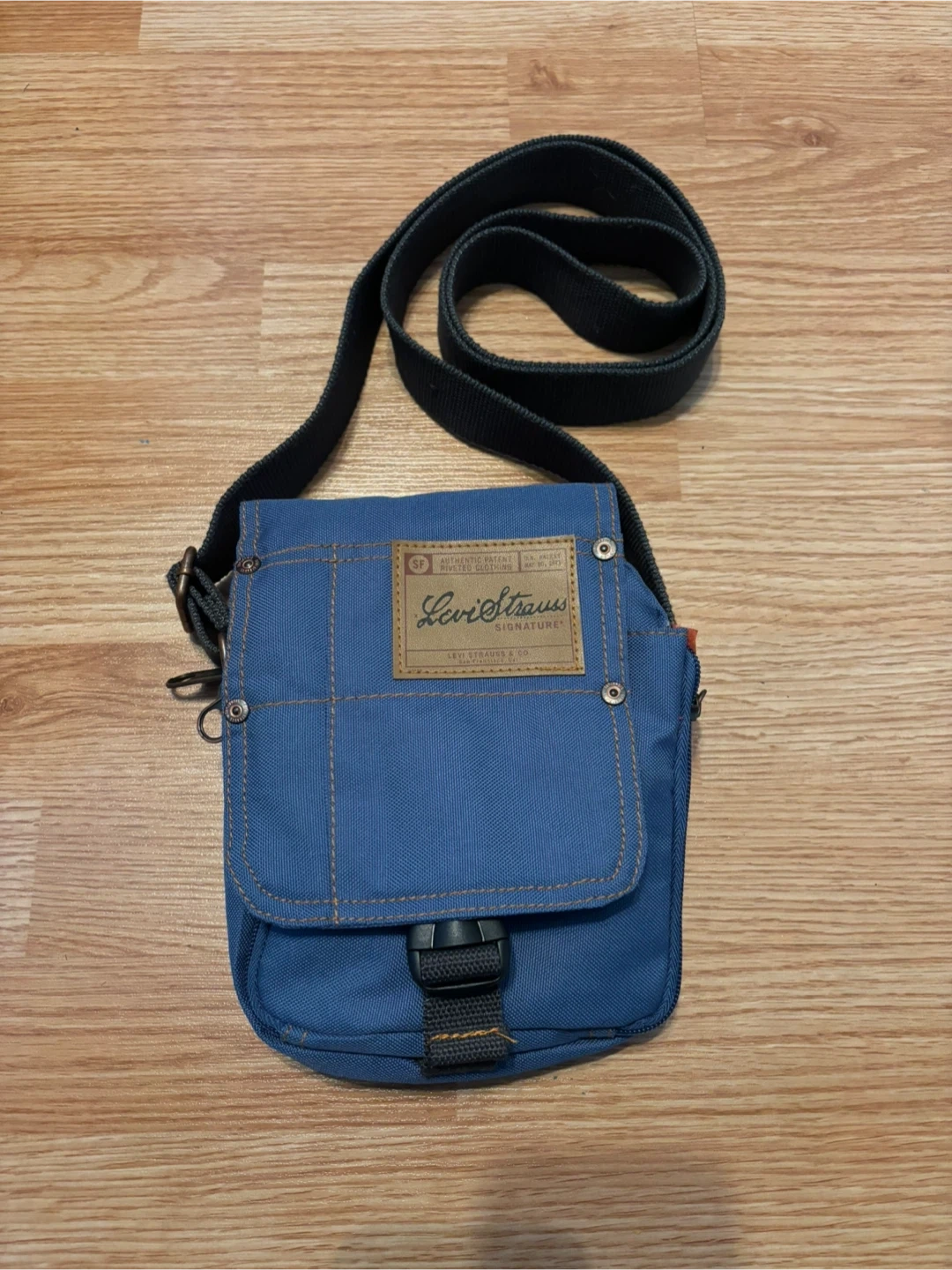 15Levi Strauss & Co. blue shoulder bag is up for grabs! It features a dark blue adjustable strap and a blue and orange colour scheme. The bag has multiple compartments to keep your essentials organized. Perfect for everyday use!