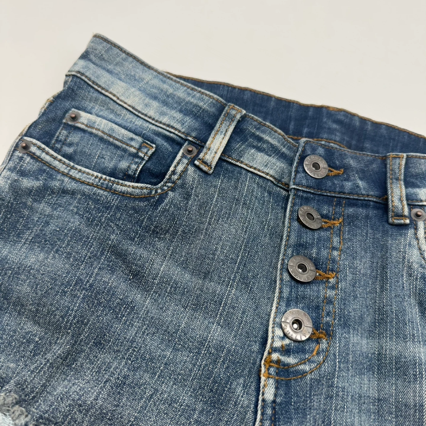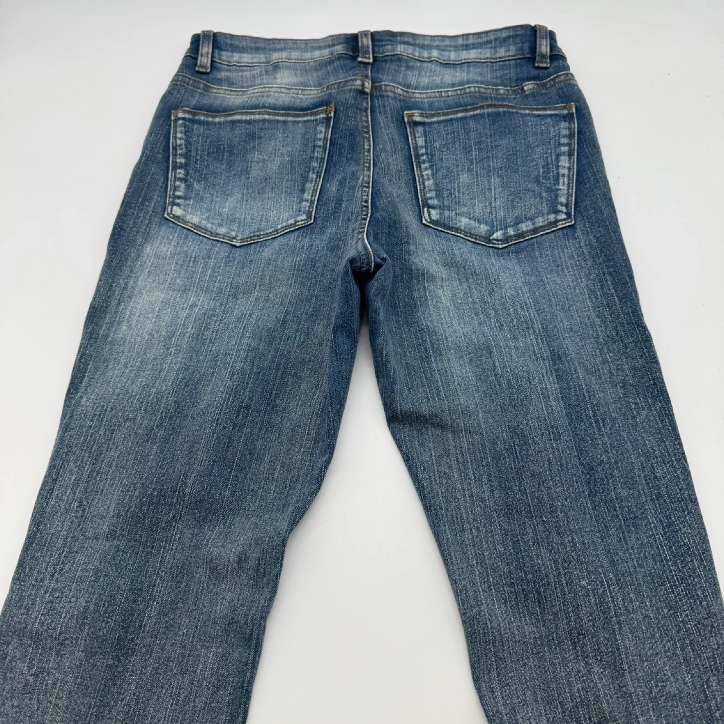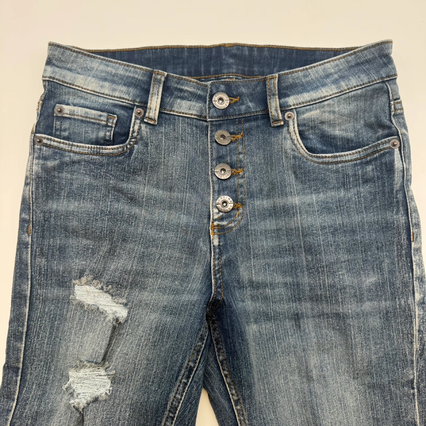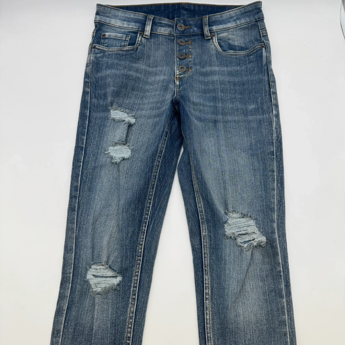 93Stylish Jeanologie women's jeans featuring a button fly and distressed ripped design on both legs. Crafted with a high-quality stretch denim blend - 70% Cotton, 25% Polyester, 3% Viscose, 2% Spandex - providing comfort and flexibility. Frayed hems and a vintage washed look make these perfect for casual wear. Details: • Brand: Jeanologie • Model: NL-ROXY-VTG • Size: US 6 / Approx EU 38 / UK 10 • Material: 70% Cotton, 25% Polyester, 3% Viscose, 2% Spandex • Color: Medium Blue • Closure: Button Fly • Style: Distressed / Ripped • Country of Origin: Made in Bangladesh Pickup in North York Delivery available for extra CLJ51