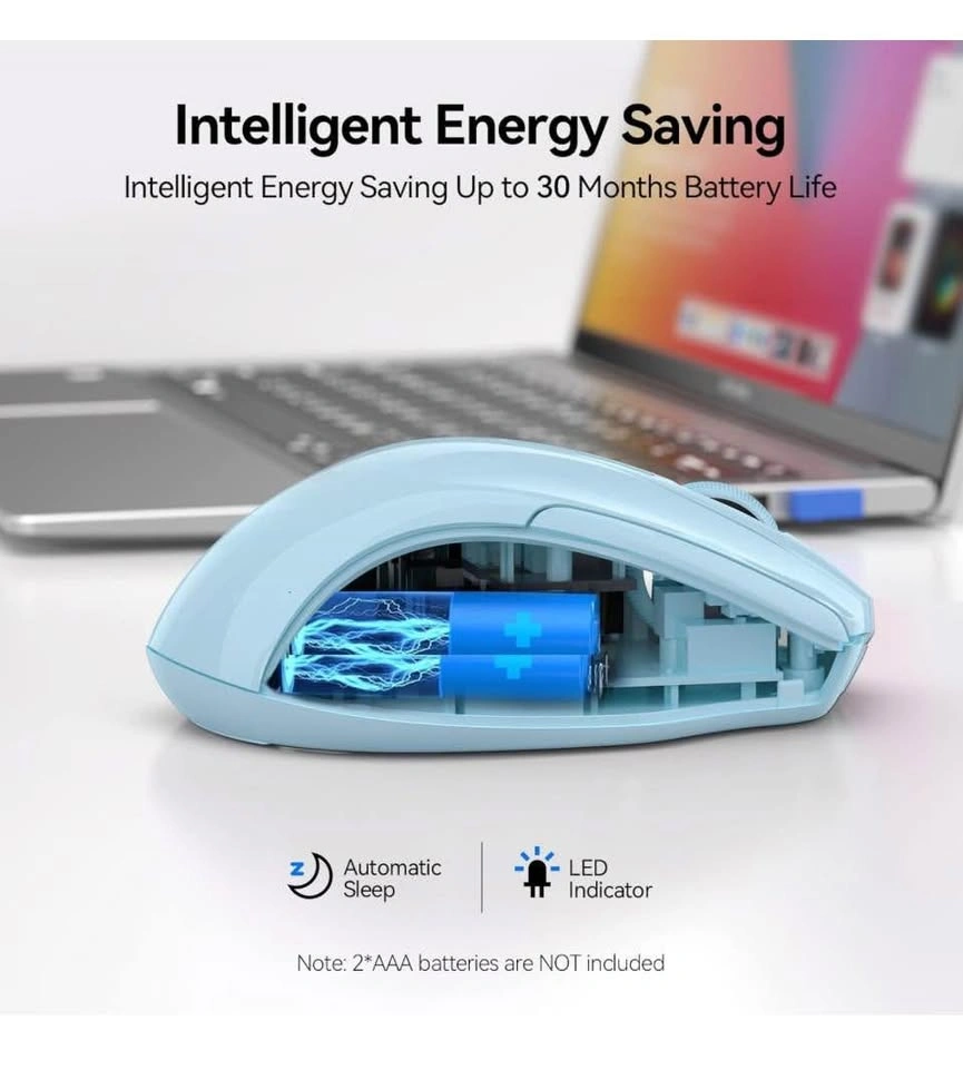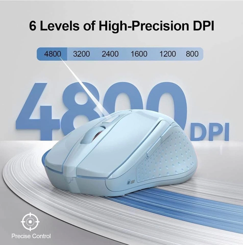 Wireless Mouse (2.4G & BT5.0/3.0) Silent 4800 DPI Computer USB A & Bluetooth Mouse 6 Buttons, Wide Compatibility - Lightblue - Brand New!