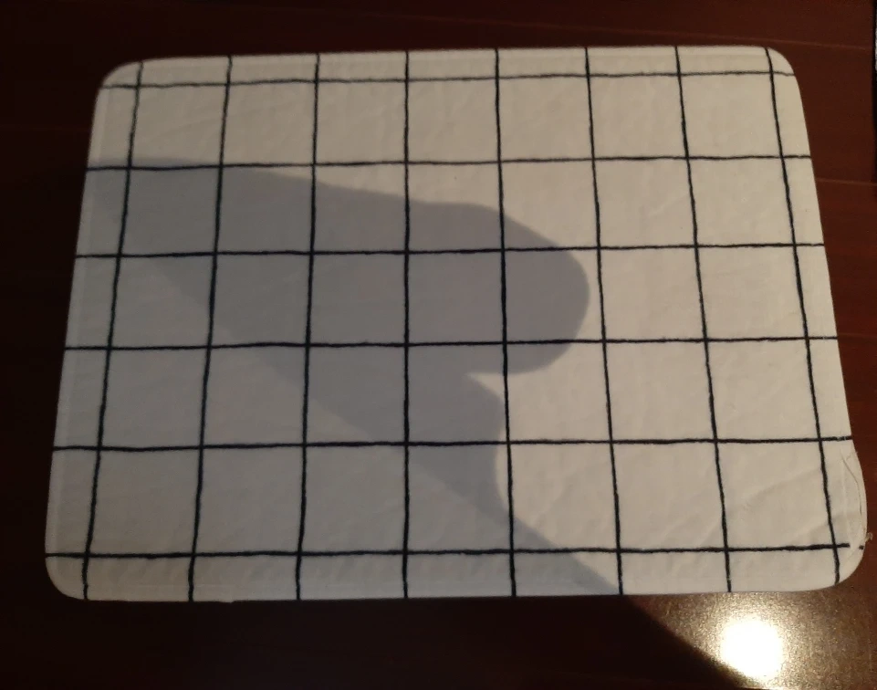 Here's a floor mat with a grid pattern. It's in great condition and ready for a new home.