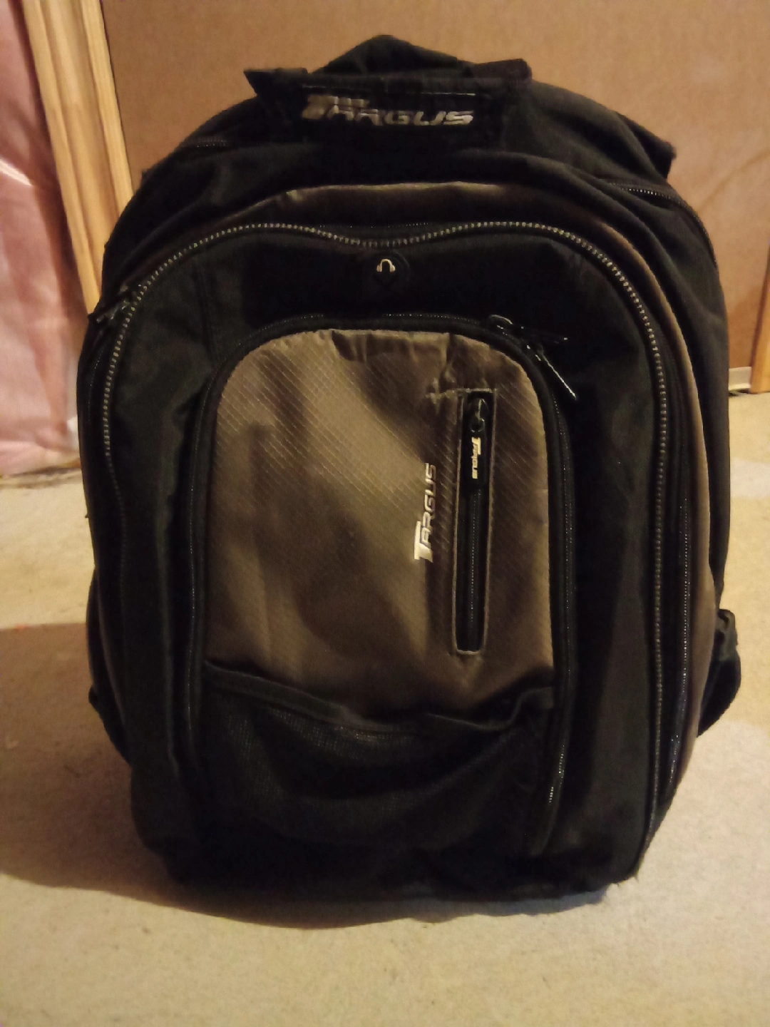Selling a Targus backpack in black. It has multiple compartments to keep your belongings organized. It's in good condition and ready for a new owner!