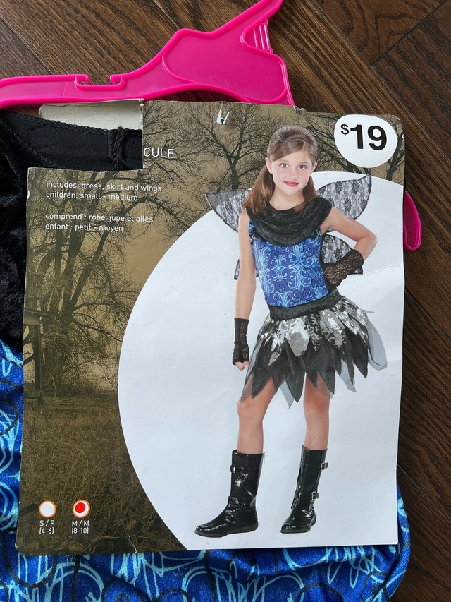 18Dress your little one in this enchanting blue and black fairy costume, designed for girls sized Small/Medium (4-6/8-10). This gently used costume includes a dress, skirt, and wings, ready to spark imaginative play. Perfect for Halloween or dress-up, it’s in great shape and ready for a new adventure! * Size: S/M (4-6/8-10) * Colour: Blue and Black * Includes: Dress, Skirt, Wings I have looked at similar costumes sold on Kijiji and am pricing to sell.
