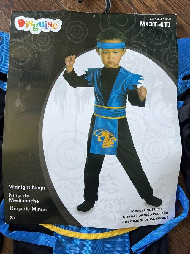 20Dress your little ninja in this Disguise Midnight Ninja Costume, size M (3T-4T), perfect for Halloween or dress-up! This costume is new and includes the tunic, pants, and head tie. It's a great way to spark imaginative play and stealthy adventures. If the ad's still up, it's available!