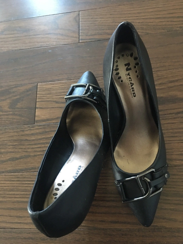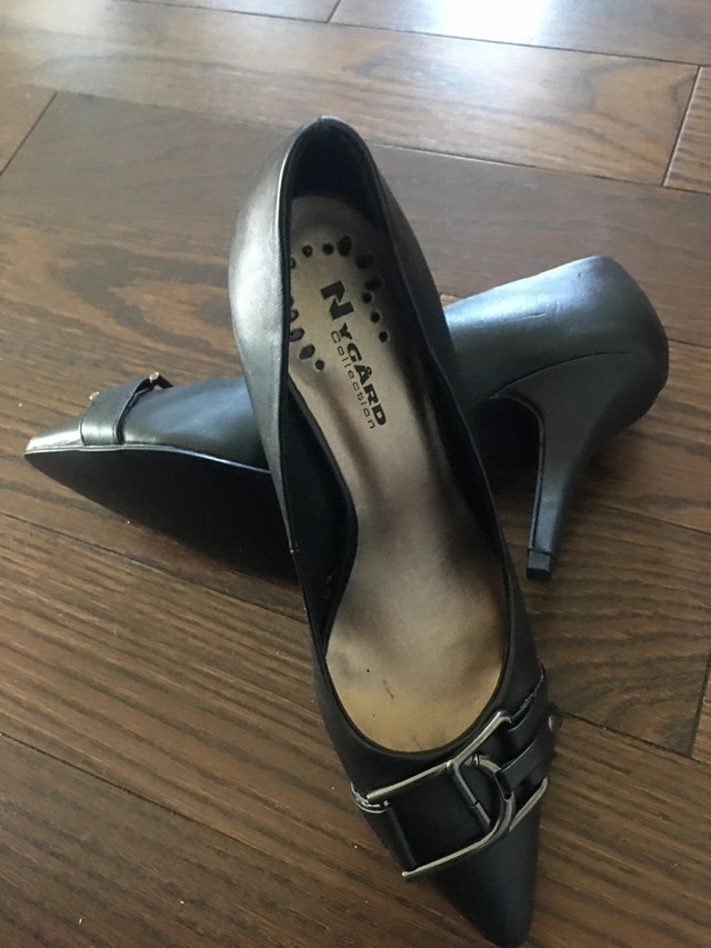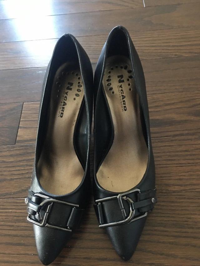 20Step out in style with these Nygard Collection black heels, perfect for any occasion. These heels feature a sleek design with a stylish buckle accent. These are used shoes. Key Features: - Brand: Nygard Collection - Colour: Black - Style: Heels with buckle detail - Condition: Used. Similar heels are priced between $20 and $40. Offered at a reasonable price considering they are used, these heels are ready to strut their stuff once more! If the ad is up, the heels are available! Condition: Used - Good Size: 8
