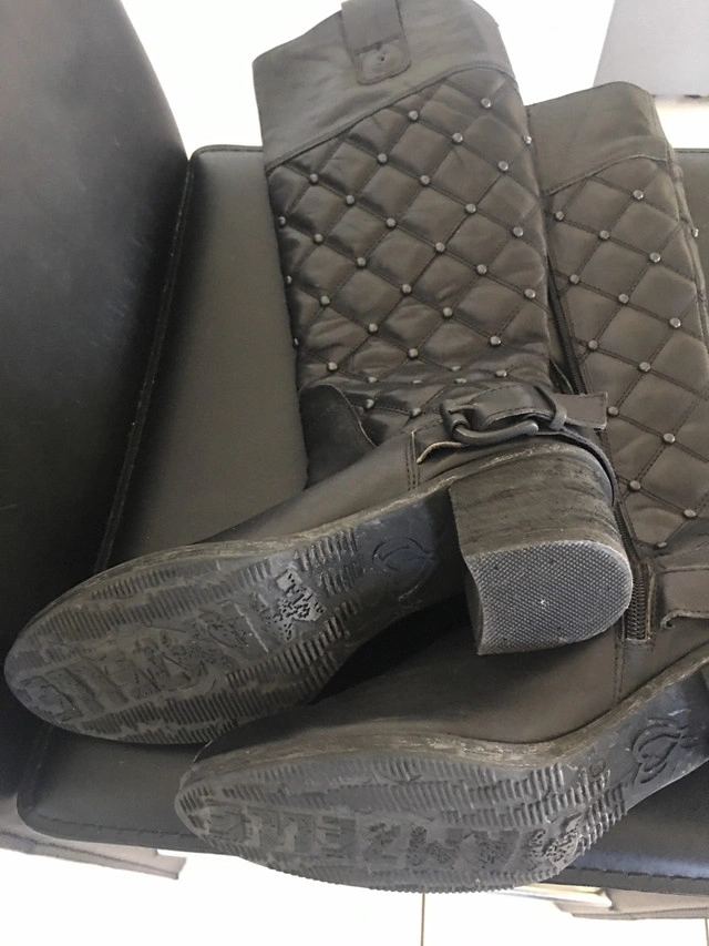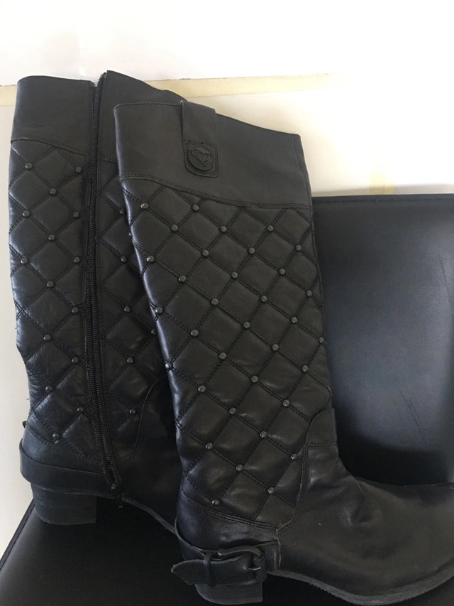 20Step out in style with these Miz Mooz black boots, size 7. These used boots feature a chic quilted design and are perfect for adding a touch of edginess to any outfit. The boots are in fair condition, showing some signs of wear, as seen in the photos. I'm clearing out my closet, so these stylish boots need a new home. If the ad is up, they're still available and ready to go!