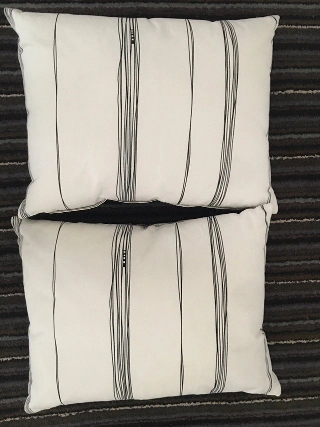 20Refresh your living space with these stylish Ikea pillows! This set of two square decorative pillows features a unique black and white pattern that adds a touch of modern flair to any room. They are in good condition. Perfect for adding a bit of comfort and style to your sofa or bed. Specifications: Price for both * Brand: Ikea * Type: Decorative Pillows * Pattern: Black and White * Shape: Square * Quantity: Two (2) I've had these cushions brightening up my living room, and now they're ready to bring joy to someone else's space. The listed price reflects their used but well-loved condition. So, if you're seeing this ad, yes, they're still available!