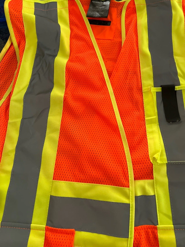 20This high-visibility surveyor vest is designed to keep you safe and seen on any job site. It features reflective stripes and a bright orange colour for maximum visibility, along with multiple pockets for convenient storage. Gent used condition, ready to help you stay safe and organized. * High-visibility orange * Reflective stripes * Multiple pockets * $ 10 each Looking for a vest that does the job and keeps you visible? Well, here it is! And remember, if the ad is up, it's still available!