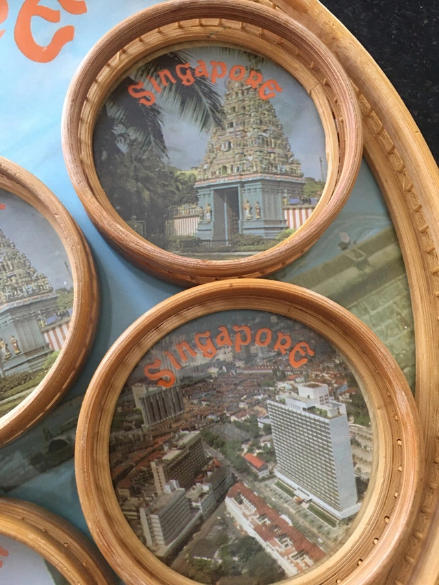 20Capture a piece of Singapore's charm with this gently used vintage souvenir from Singapore, featuring iconic images in a distinctive round frame, perfect for collectors or as a nostalgic display. If this ad is still up, it's still available!