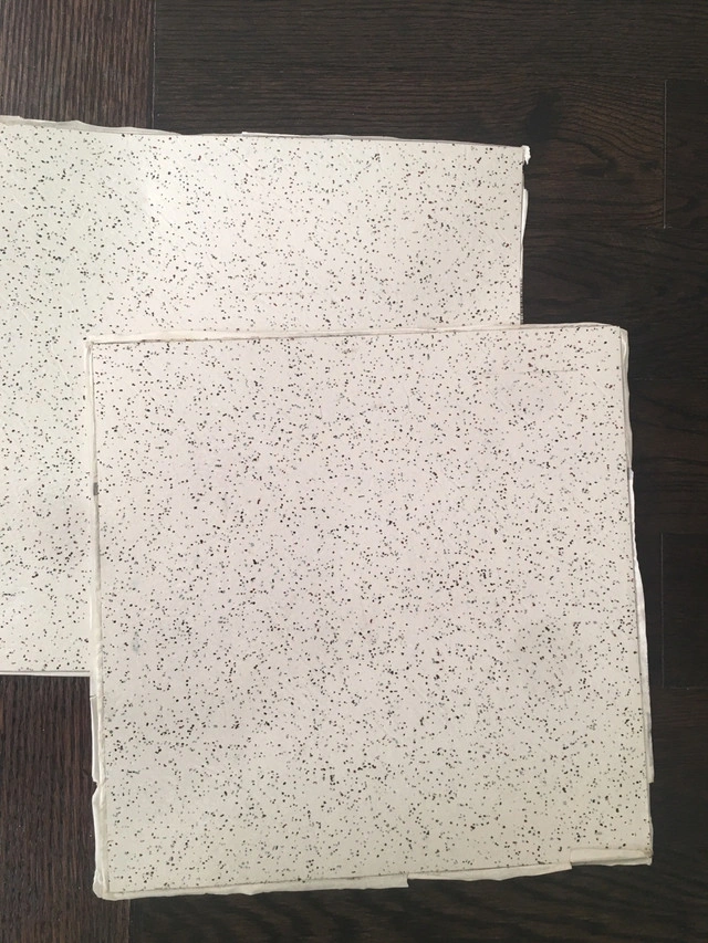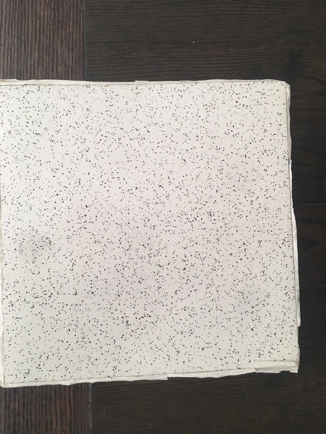 20Refresh your space with these speckled tiles, each measuring 12x12 inches . They functional and ready to give a new look to your place. * Dimensions: 12”x12” * Style: Speckled * Condition: Fresh * Quantity: 40-50 tiles Looking to add a touch of whimsy to your decor? These tiles might just be your answer. And remember, if the ad's up, the tiles are up for grabs! Priced at 50cents per tile.