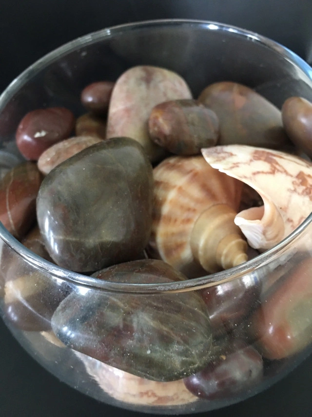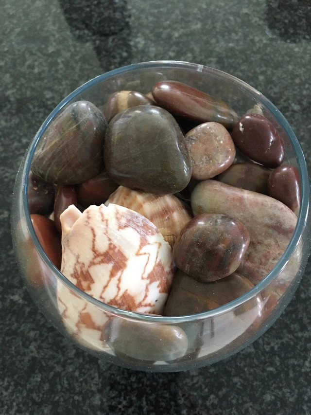 20Add a touch of zen to your space with these decorative rocks and seashells, perfect for any room. This unique collection sits in a clear glass bowl, ready to enhance your decor. Being a used item, it carries a certain charm and character, making it a delightful addition to your home. * Rocks: Various sizes and earth-tone colours * Seashells: Assorted shapes and sizes * Bowl: Clear glass Looking at similar decorative rock displays , a fair price for this charming arrangement is around $15. If the ad is up, it's still available! Don't miss out on these stones; they're just waiting to find their new home.